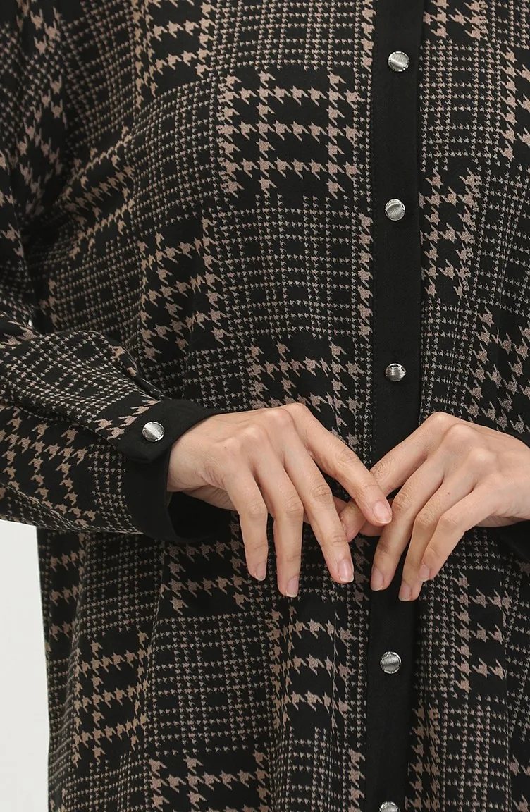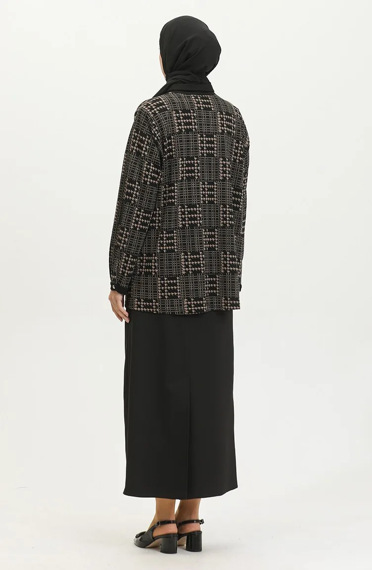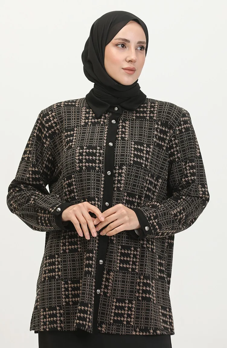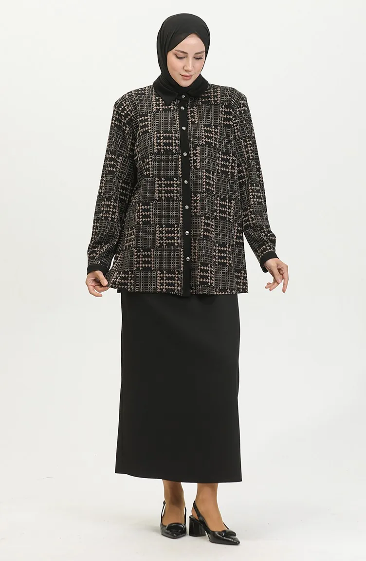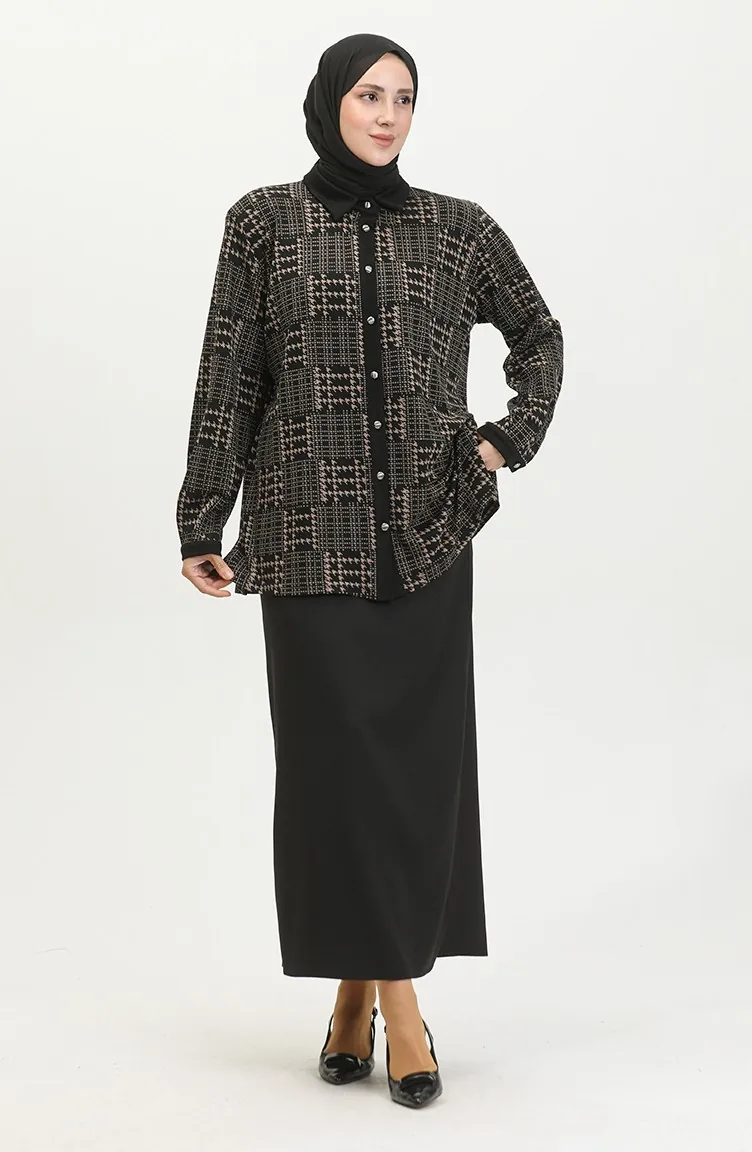 Large Size Patterned Shirt 3605B-01 Black Mink 3605B-01