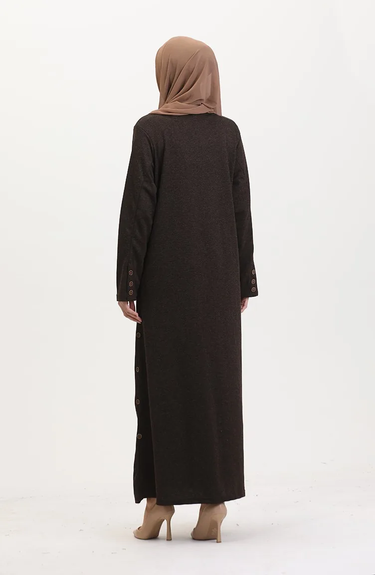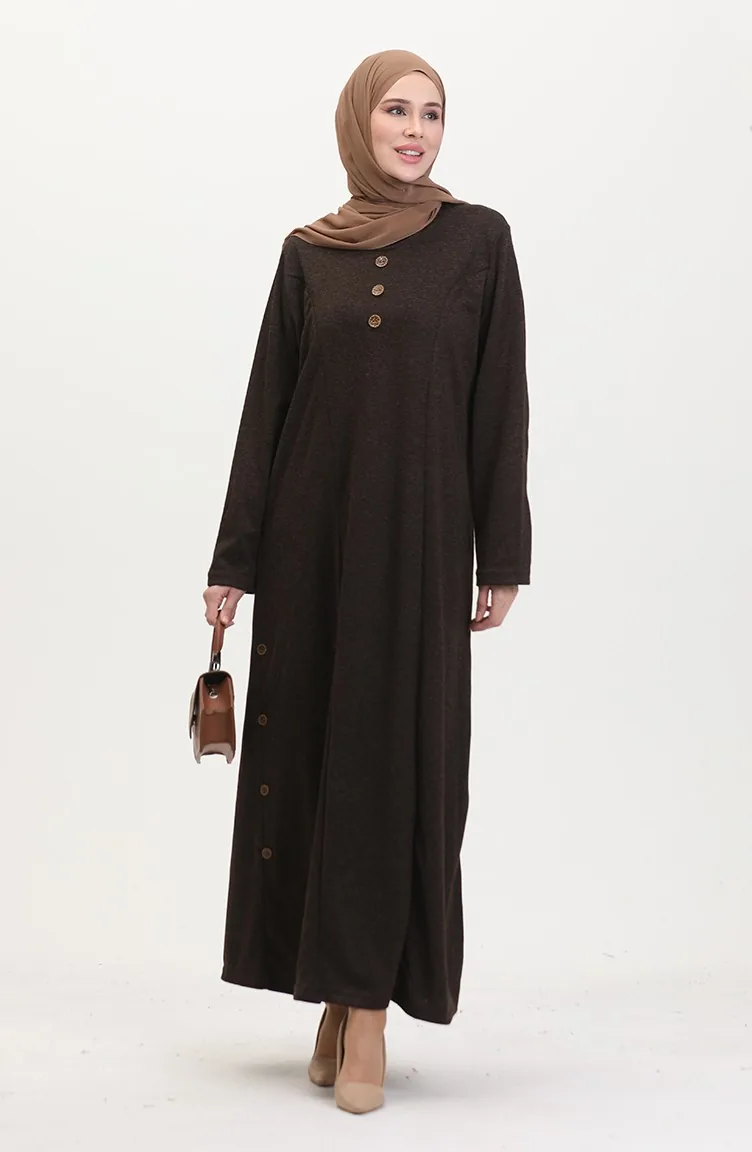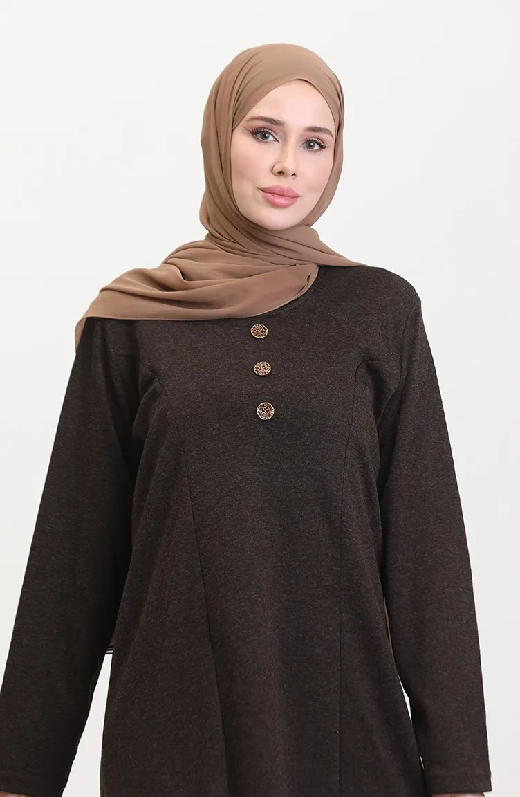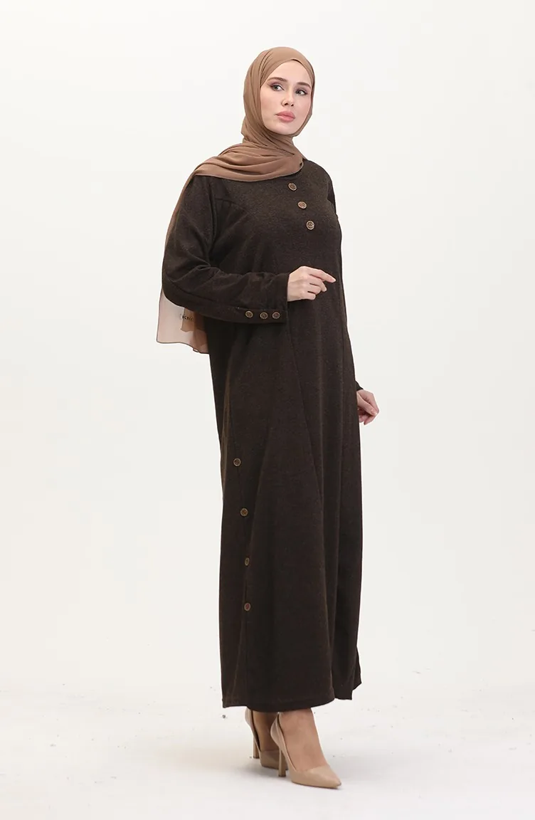 Büyük Beden Düğme Detaylı Elbise 0533-02 Kahverengi 0533-02