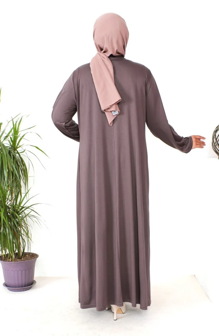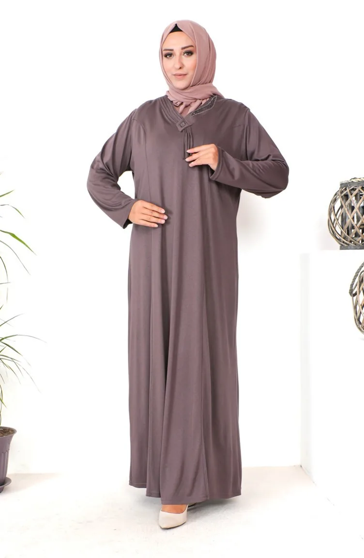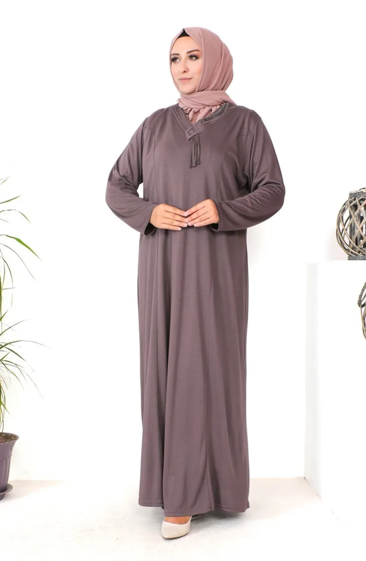 Plus Size Stone Printed Combed Cotton Dress 4932-04 Brown 4932-04