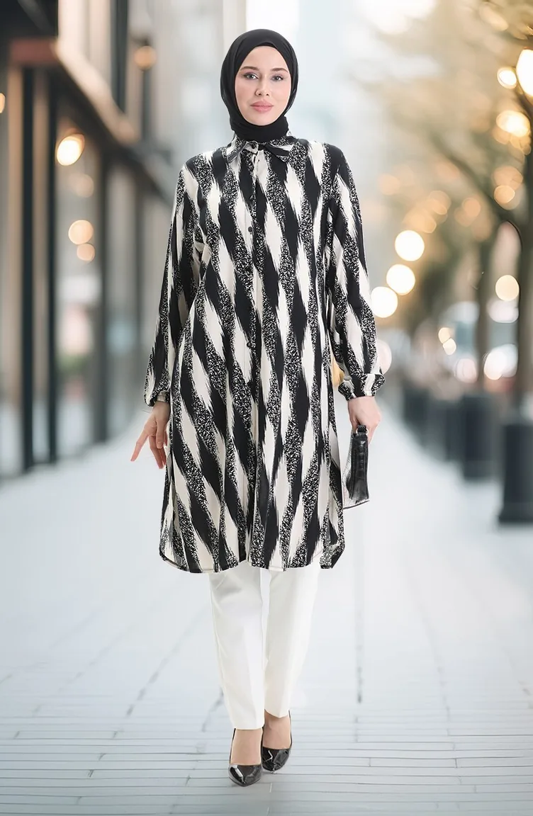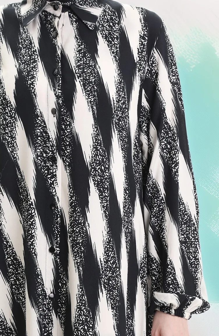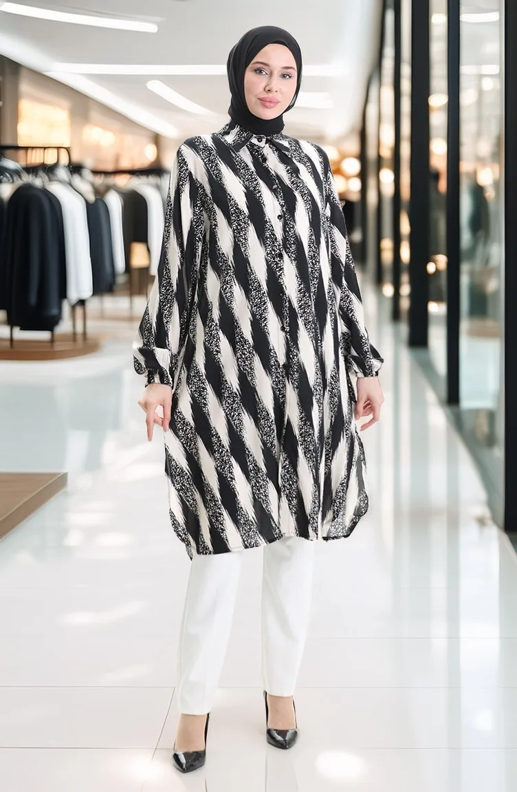 Black color is used. Viscose is a type of synthetic fabric and is convenient to use. Designed with patterned fabric. Long sleeve product. Designed for summer use. Woman. Plus size option available.