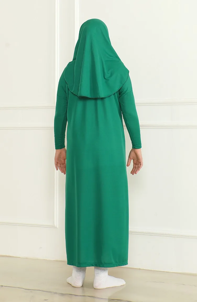 One Piece Practical Child Prayer Dress With Headscarf 1985-04 Emerald Green 1985-04