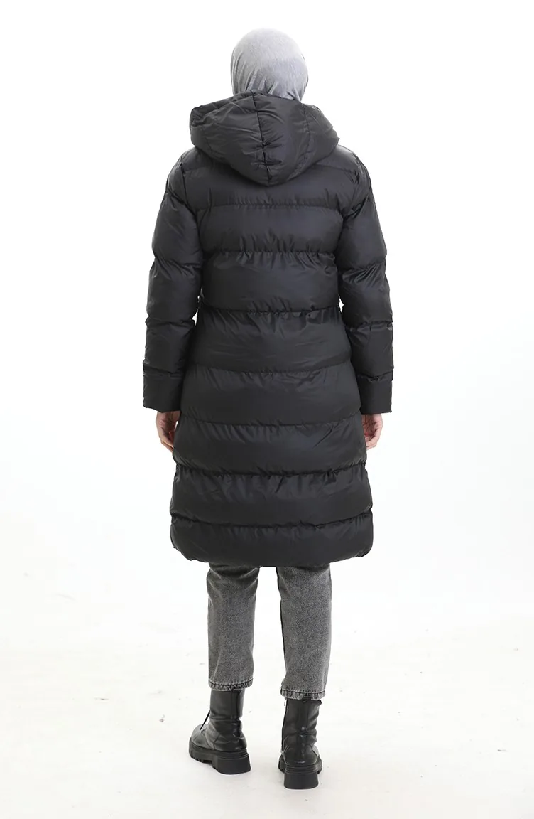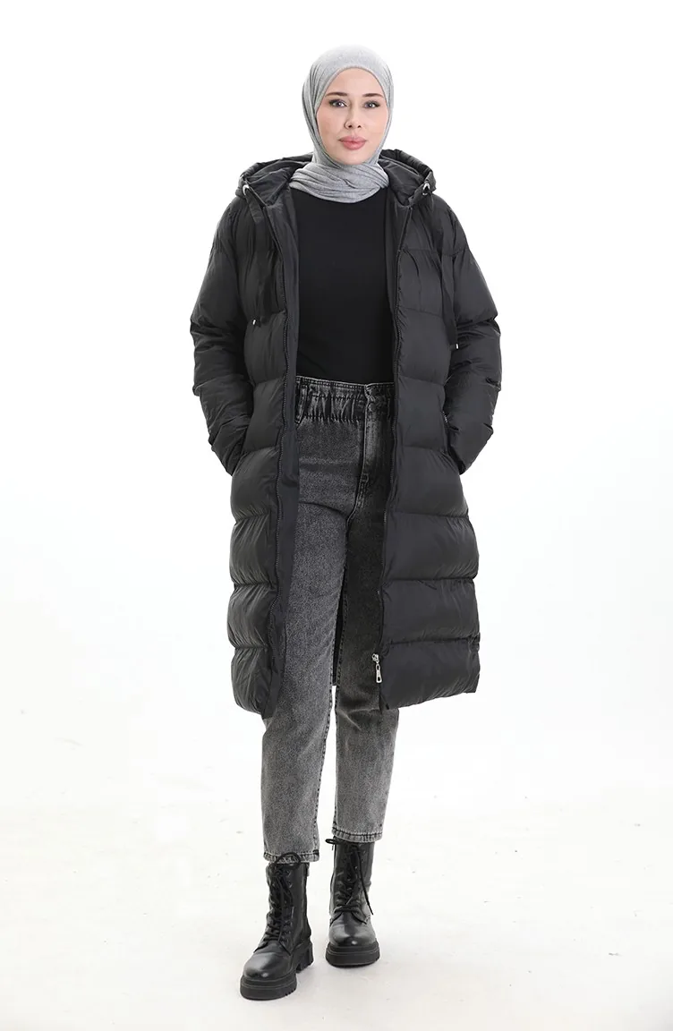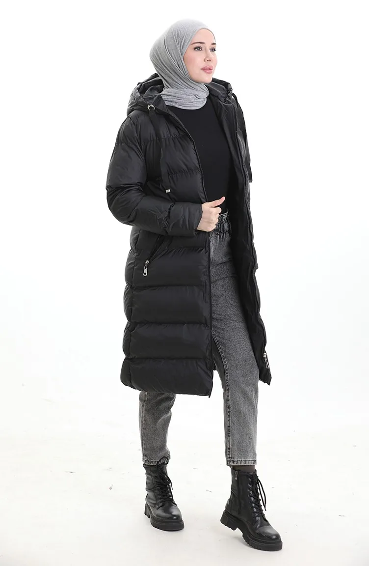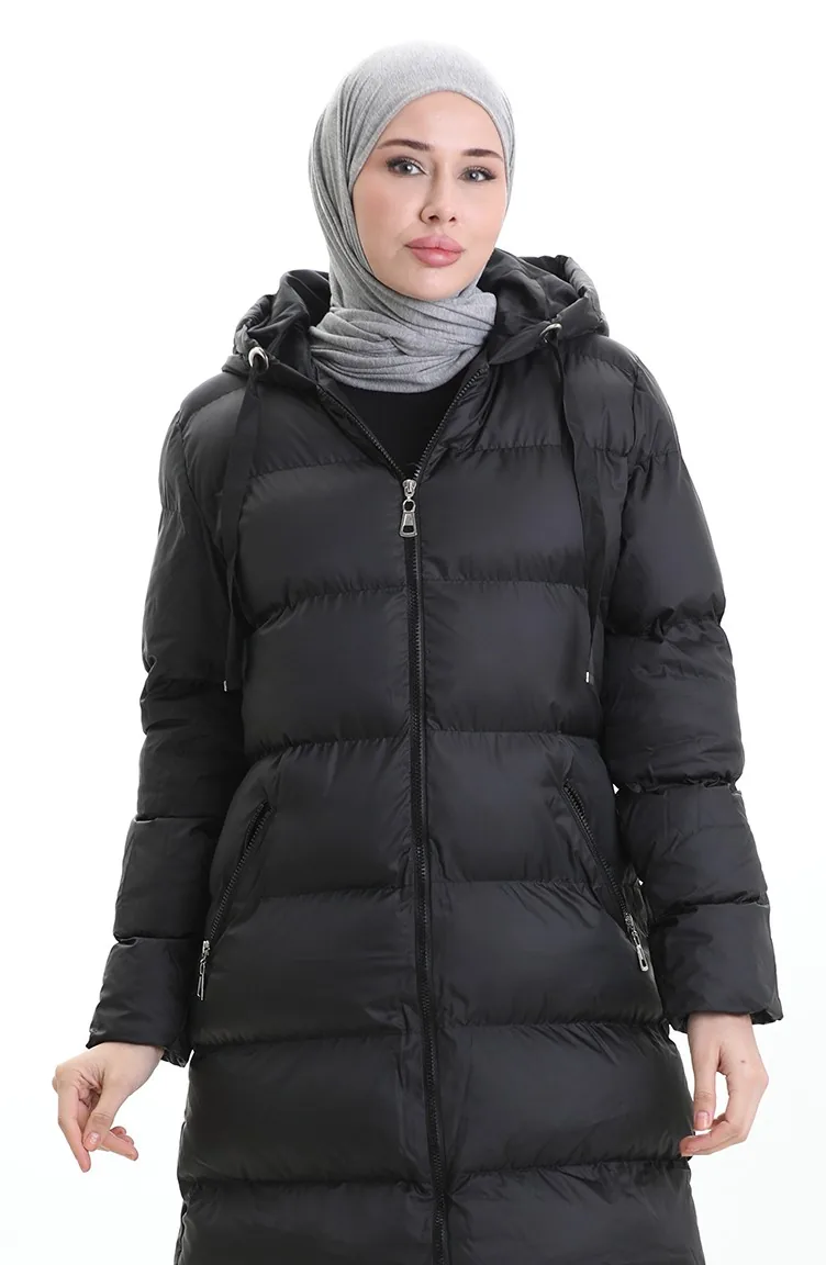 Hooded Zippered Puffer Jacket 0203-01 Black 0203-01