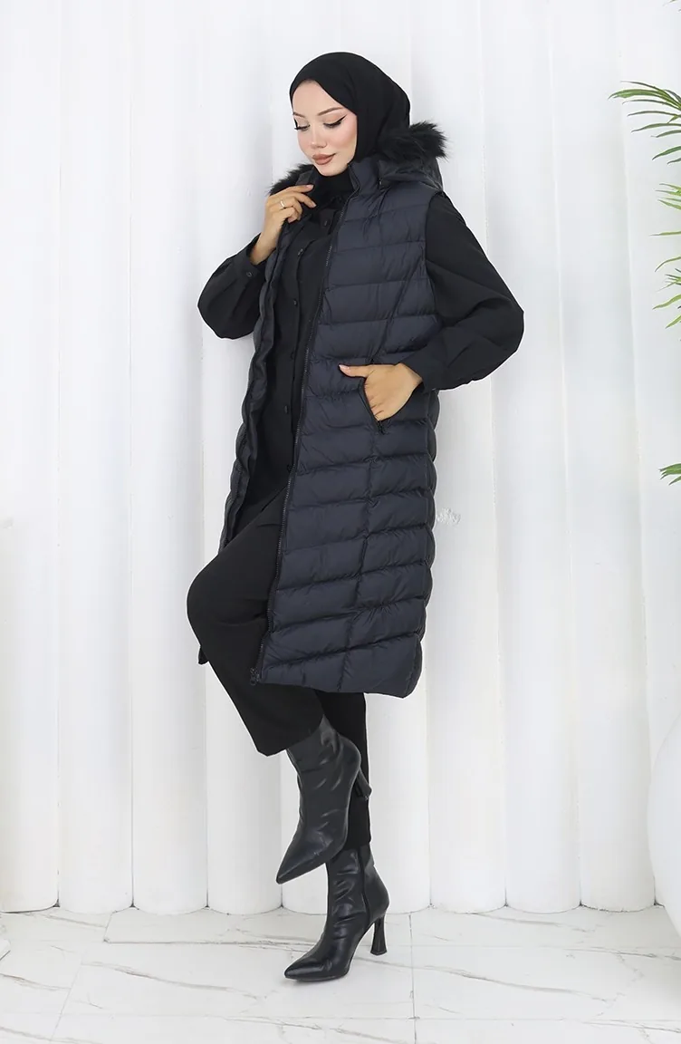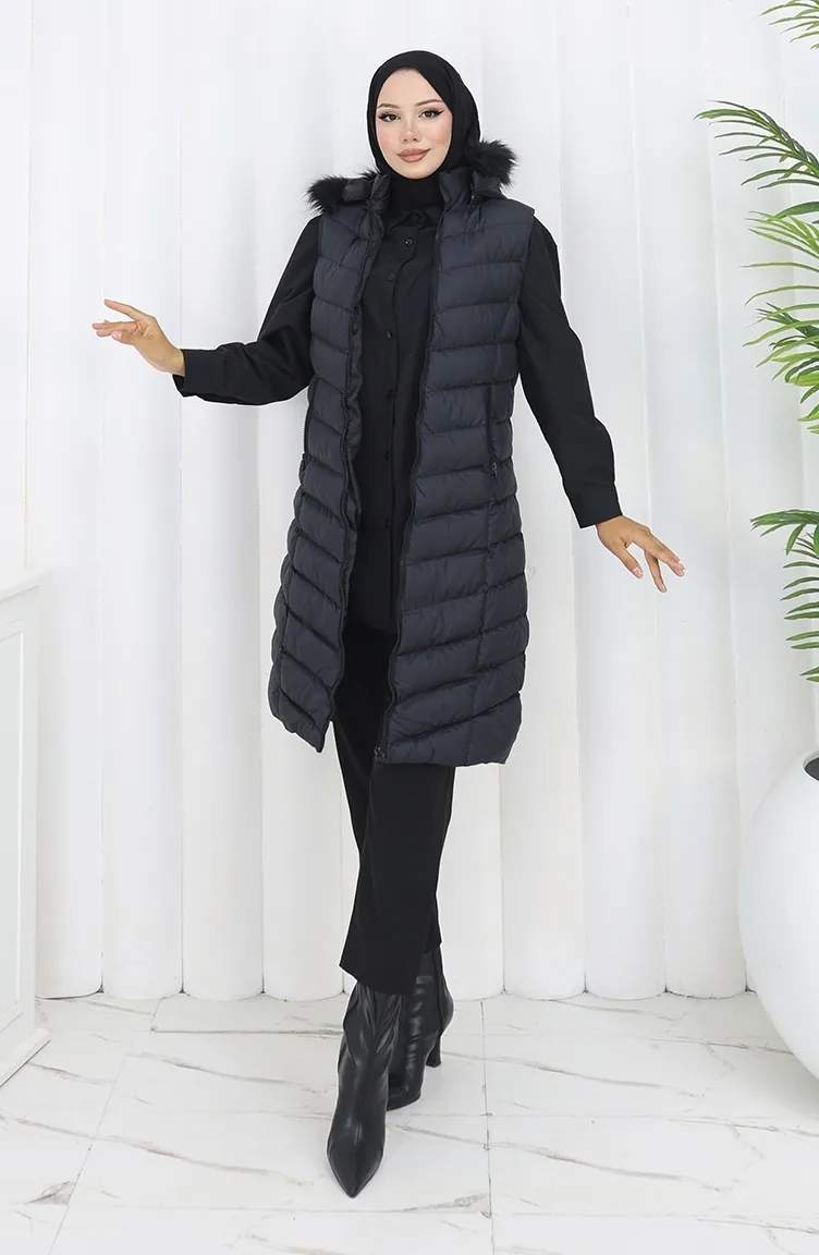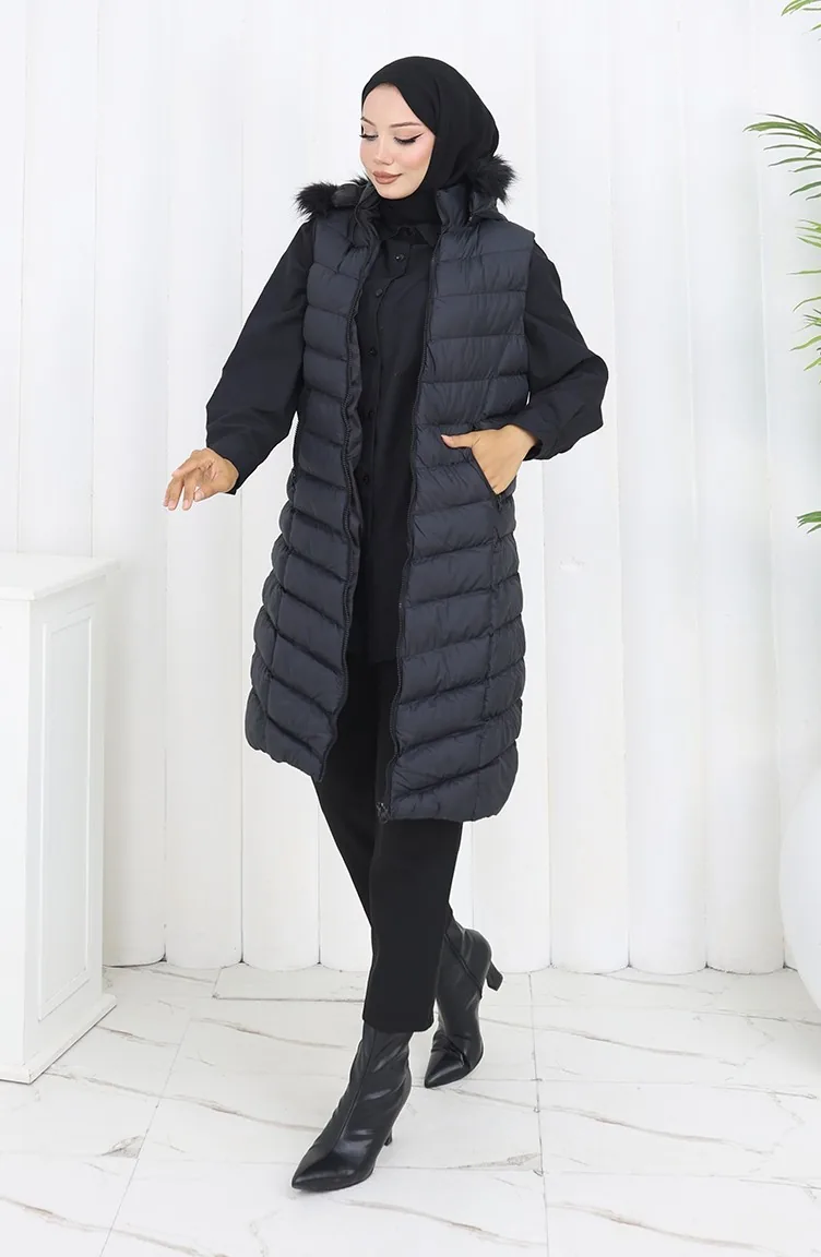 Hooded Zippered Puffer Vest 0169-01 Black 0169-01