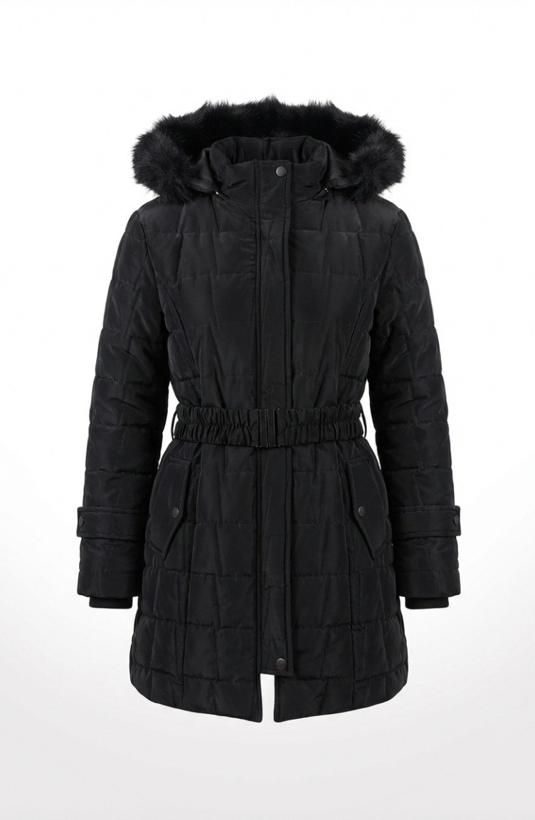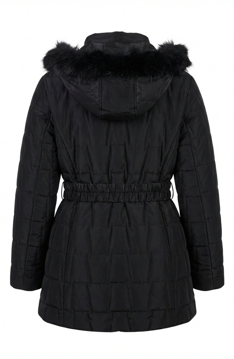 Plus Size Hooded Jacket With Belt 6345-01 Black 6345-01