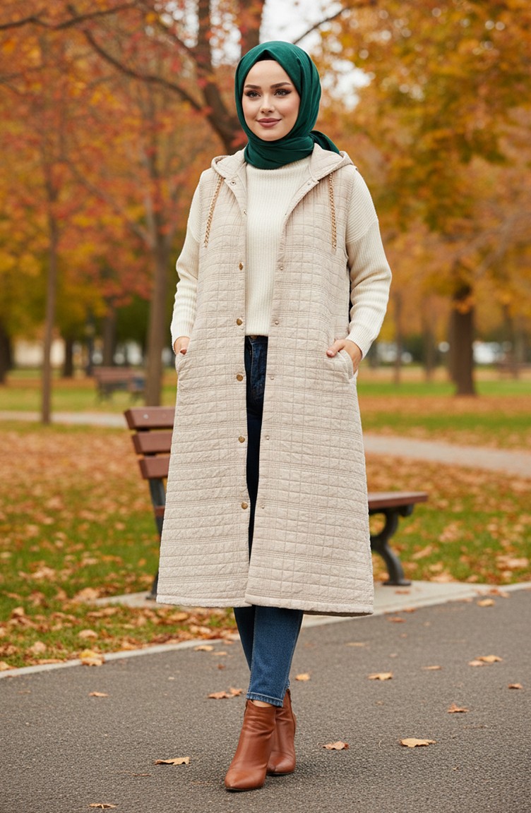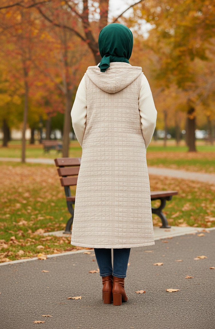 Hooded Button-Down Quilted Vest 51340A-01 Beige 51340A-01