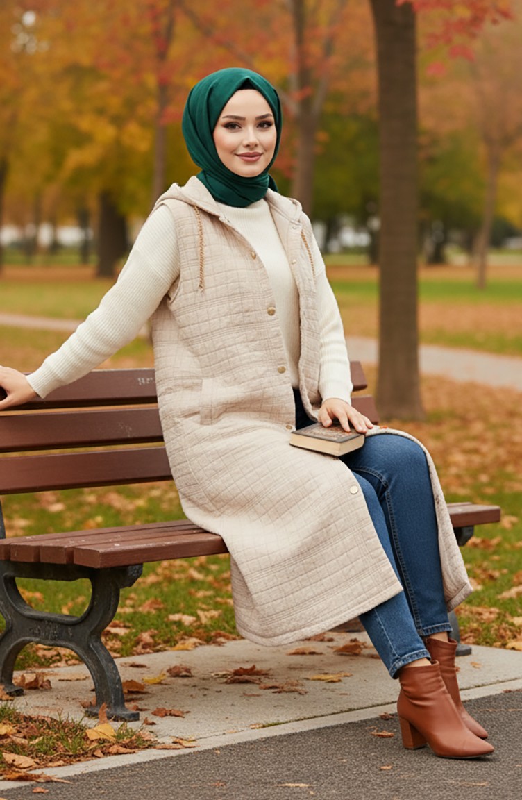 In winter, quilted models are in first place. It has a plain appearance. Buttons have been used to make it easy to use. It's a sleeveless product. Plus size option available.