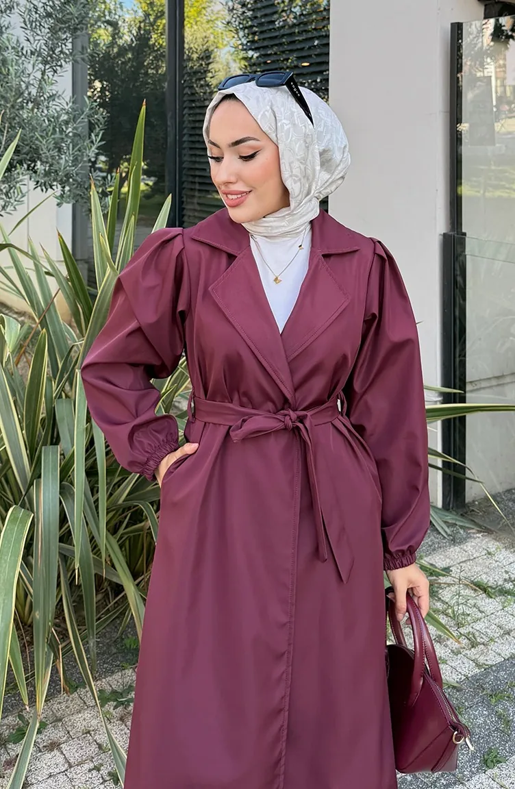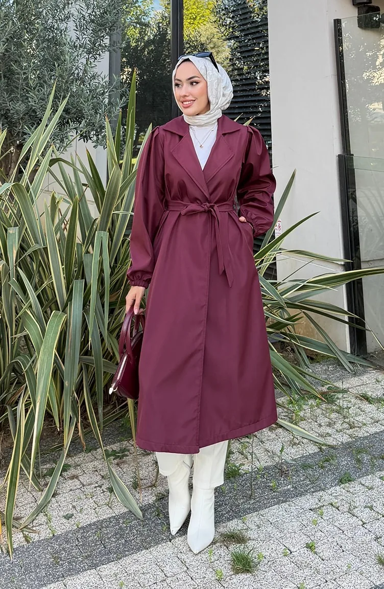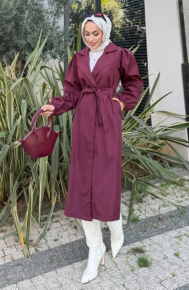 Bondit Fabric Belted Trench Coat 4551-03 Claret Red 4551-03