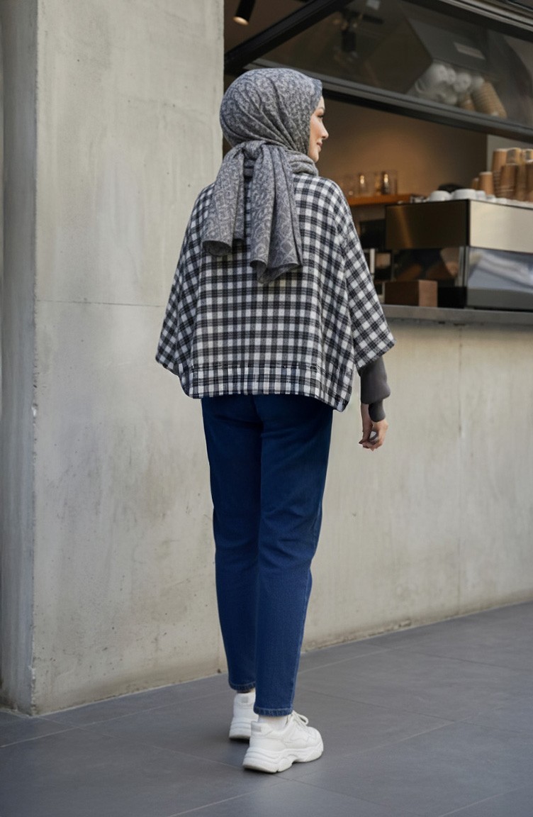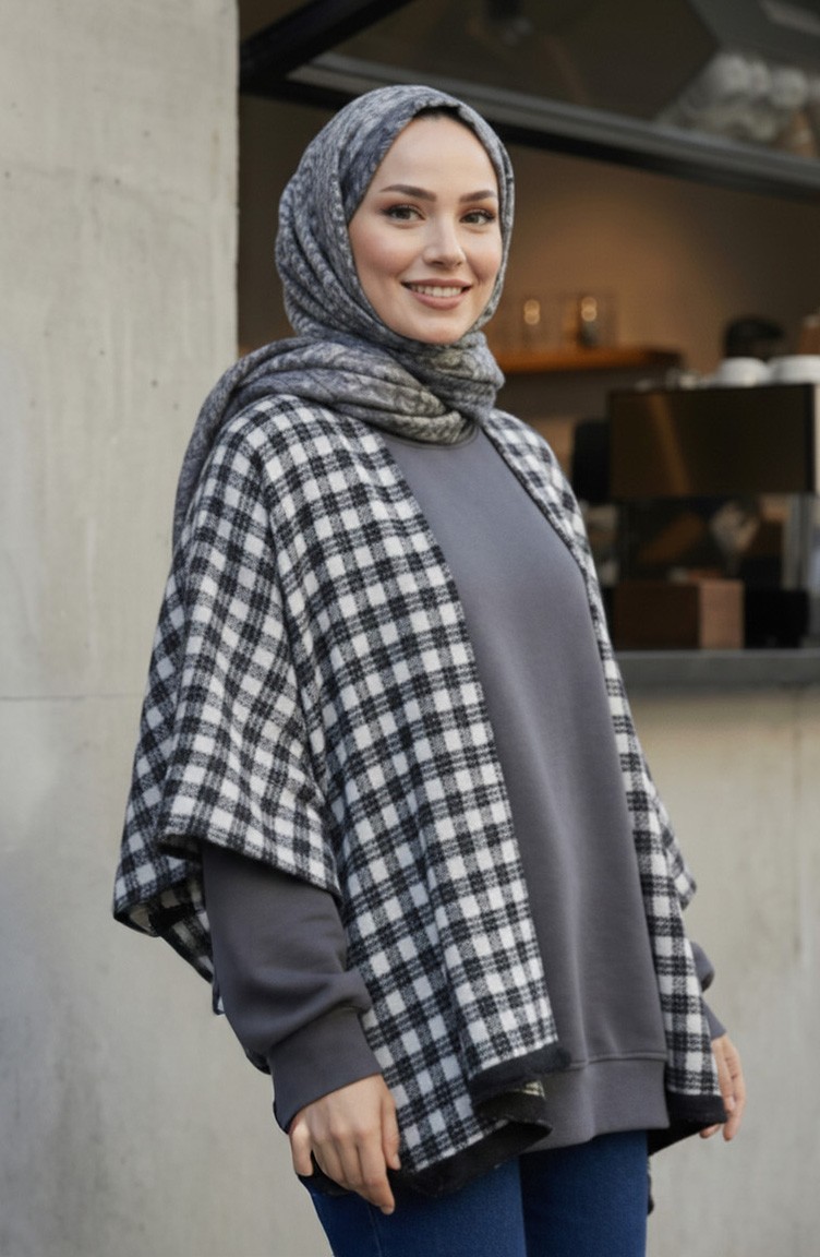 Shoulder Shawl 1121-01 Black Beige 1121-01