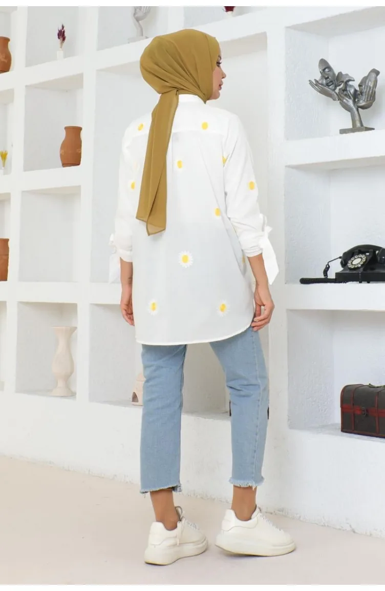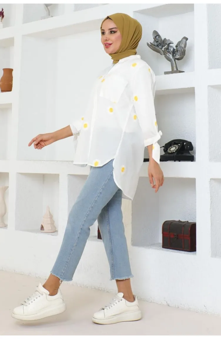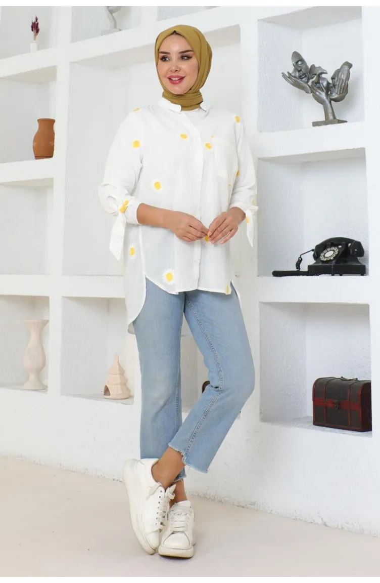 Patterned Cotton Shirt 0076-01 White 0076-01
