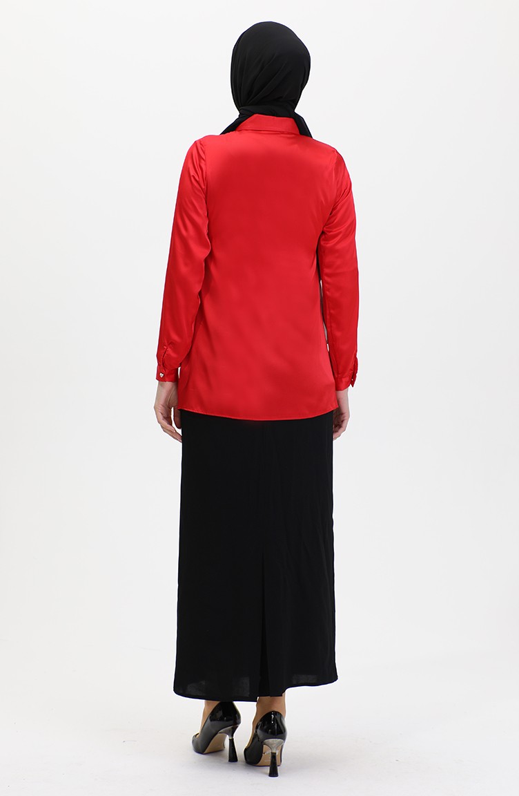 Pocket Cover Detailed Satin Shirt Red T1648 1022