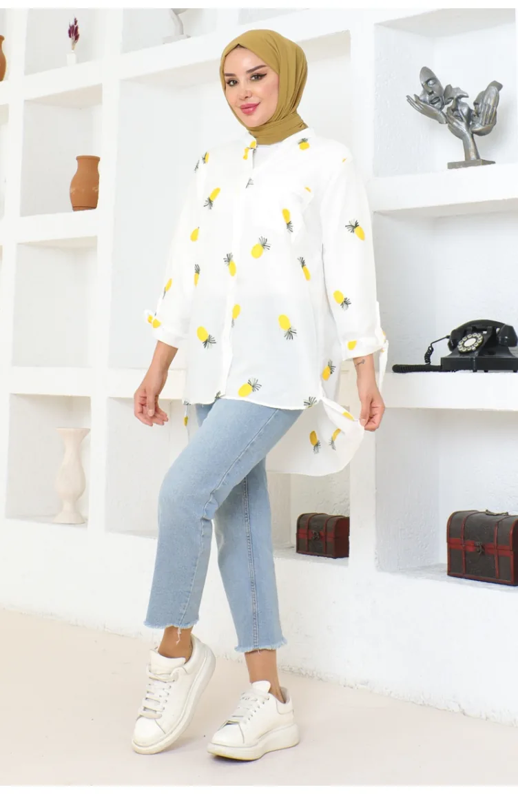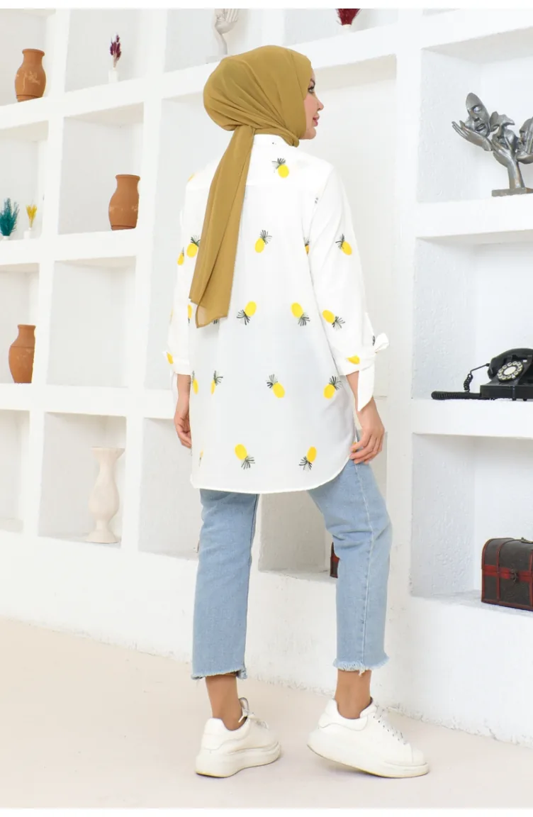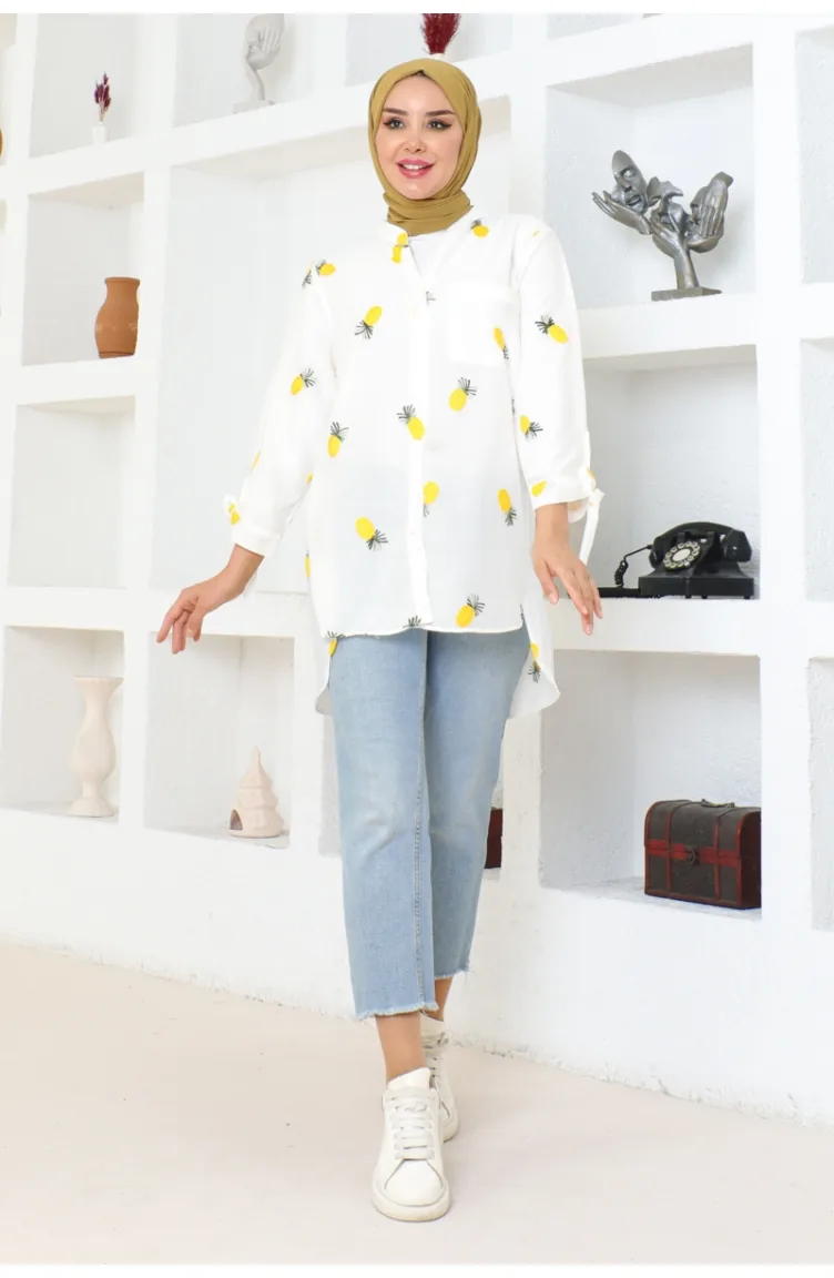 Sun Detailed Poplin Cotton Shirt 601-01 White 601-01