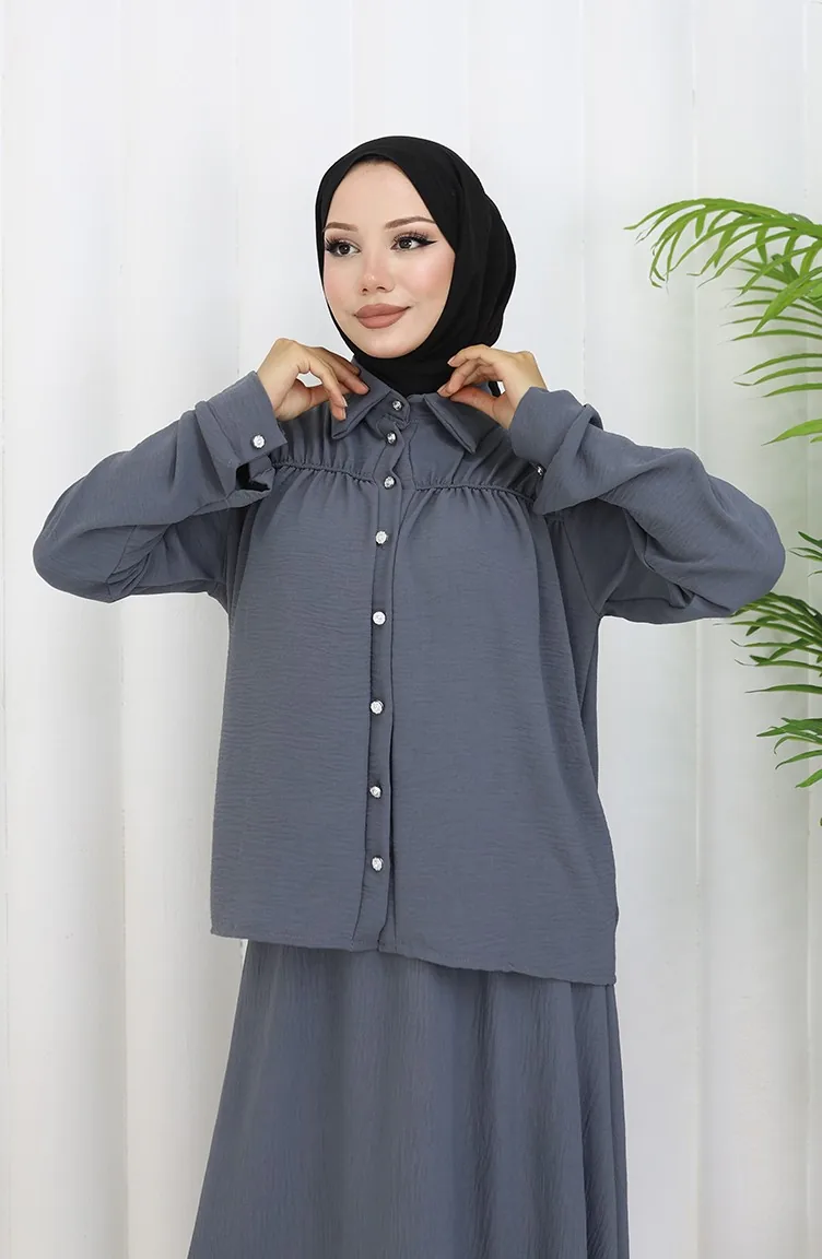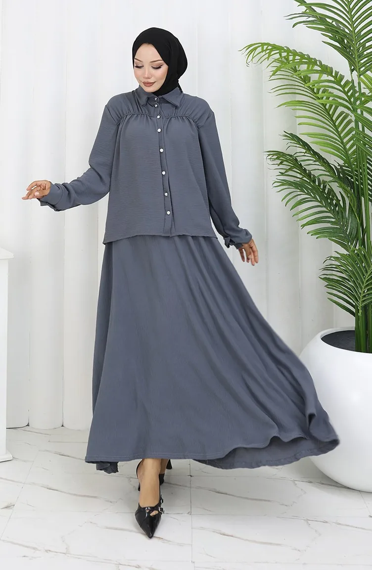 Aerobin Fabric Shirt Skirt Two Piece Suit 2082-05 Anthracite 2082-05