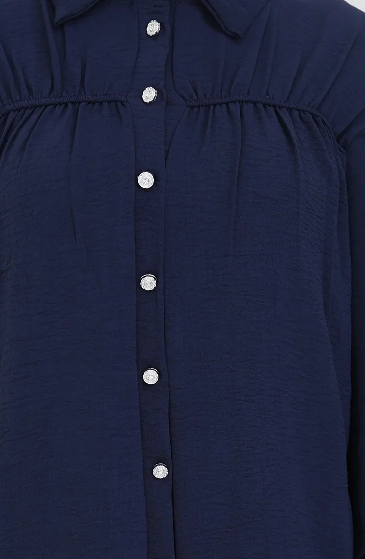 Aerobin Fabric Shirt Skirt Two Piece Suit 2082-06 Navy Blue 2082-06