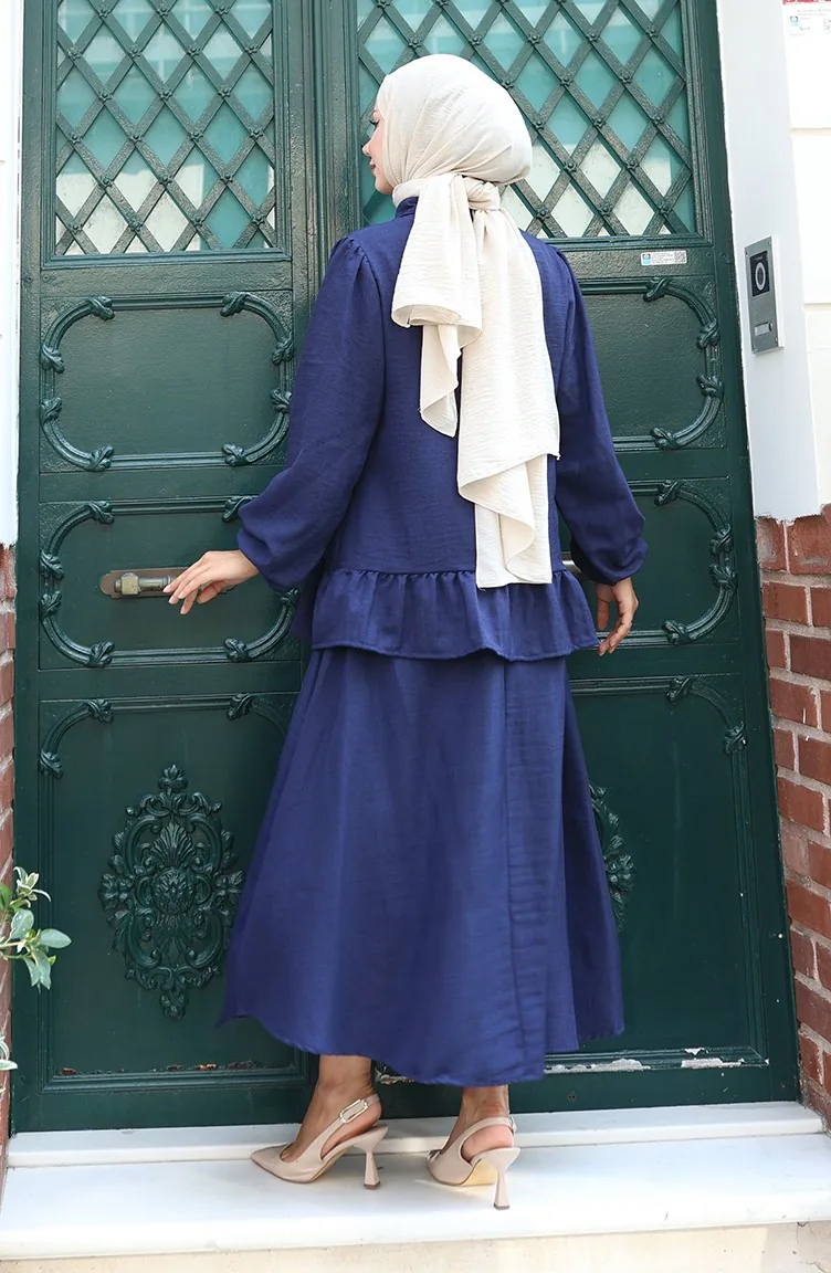 Ruffle Tunic Skirt Two Piece Suit 0146-05 Navy Blue 0146-05