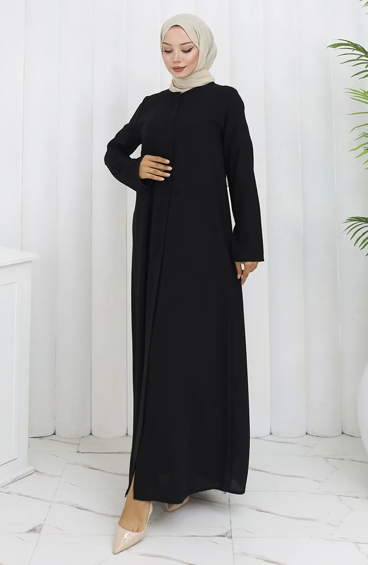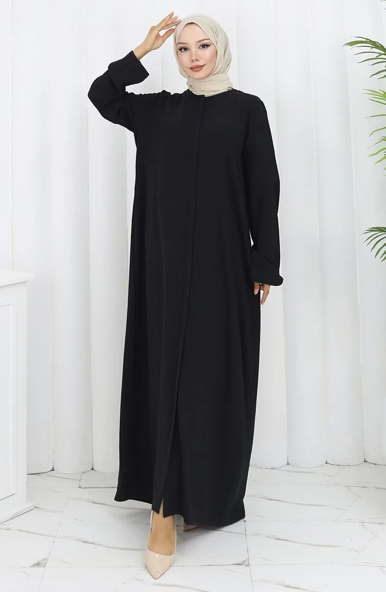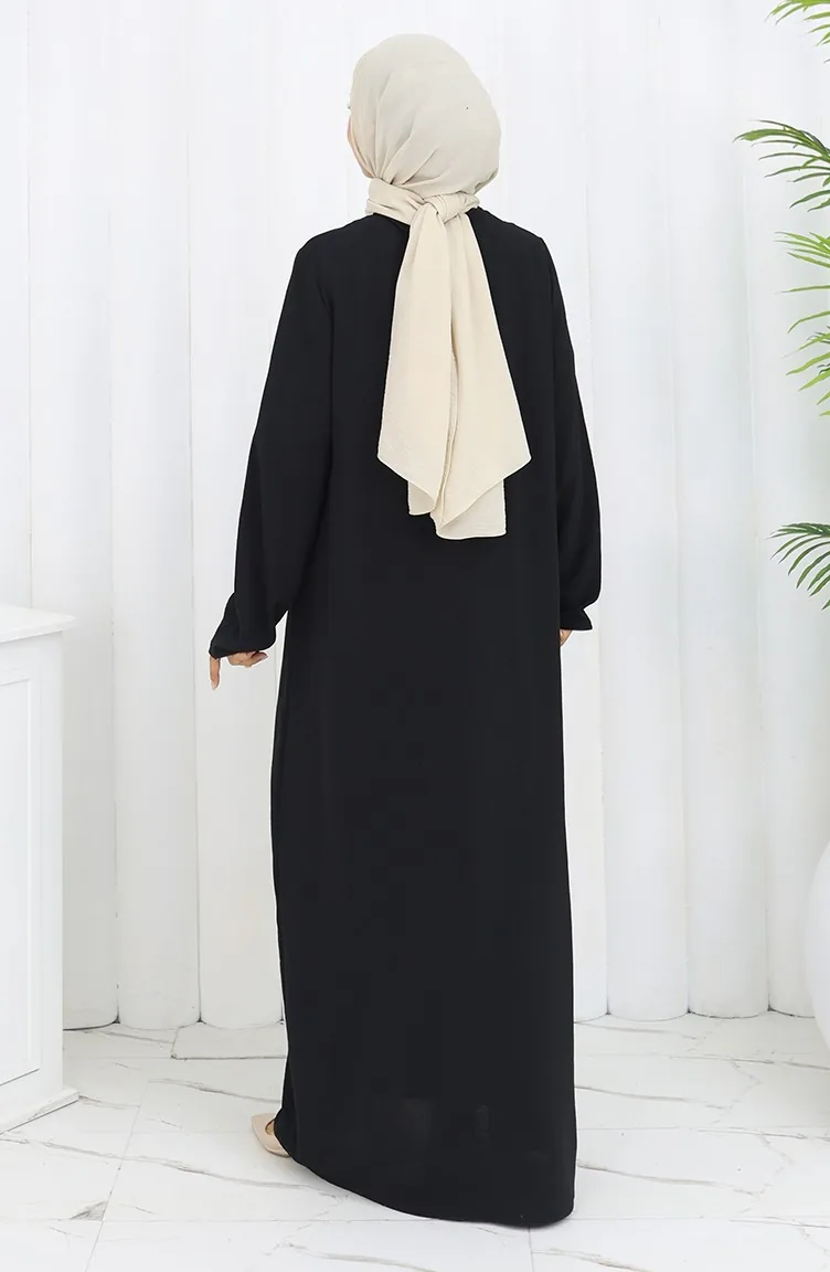 Elastic Sleeve Zippered Abaya 2501-02 Black 2501-02