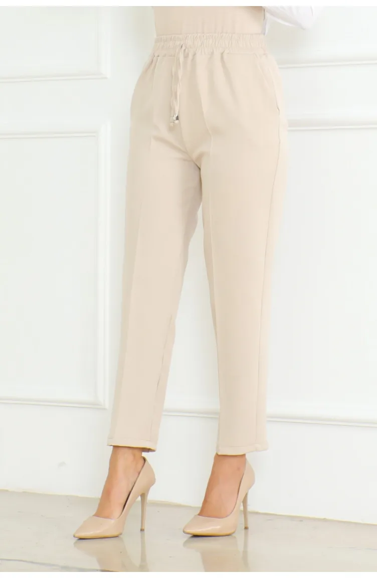 Dabil Crepe Pocket Laced Carrot Trousers 301-01 Beige 301-01