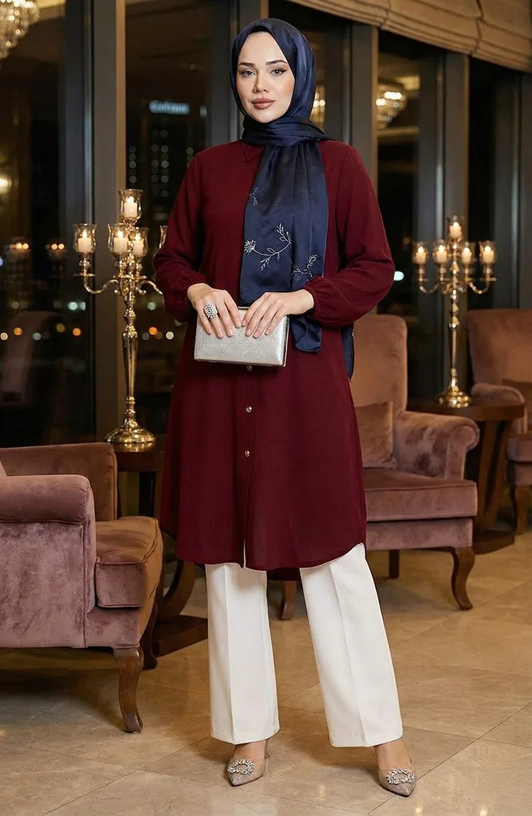 Elastic Sleeve Viscose Tunic 0171-06 Claret Red 0171-06