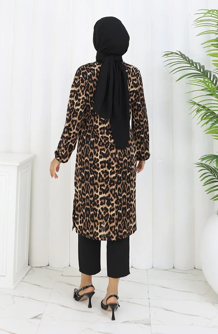 Leopard Patterned Tunic 1003C-01 Brown 1003C-01