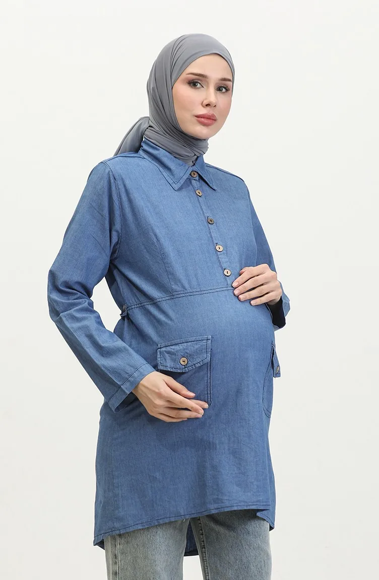 Tensel Fabric Pocketed Maternity Tunic 2700127-02 Denim Blue 2700127-02