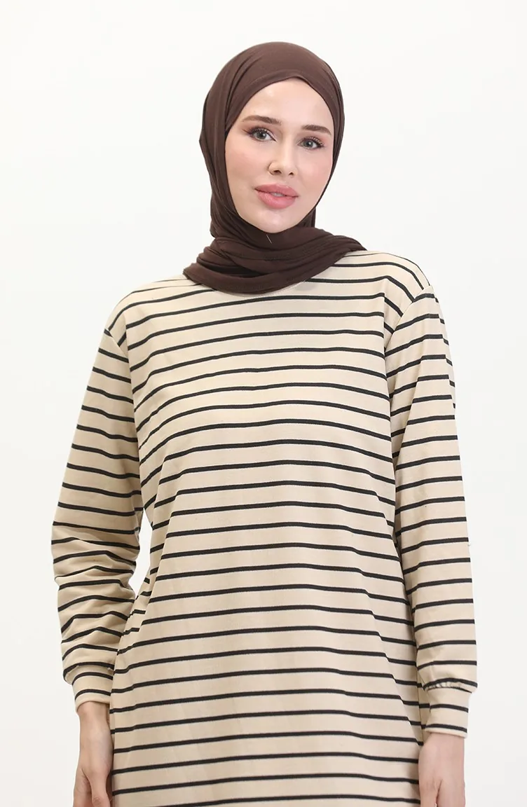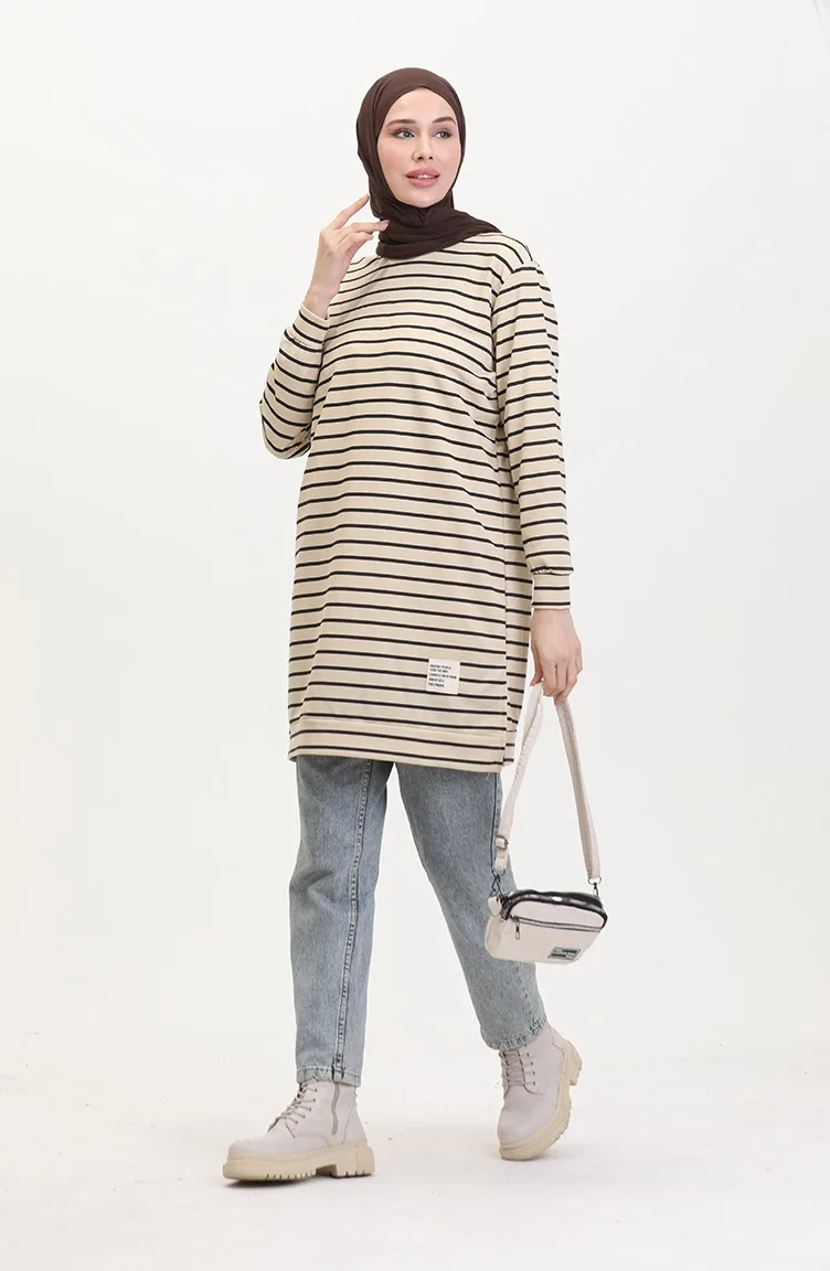 Striped Sweatshirt 0538-01 Beige Black 0538-01