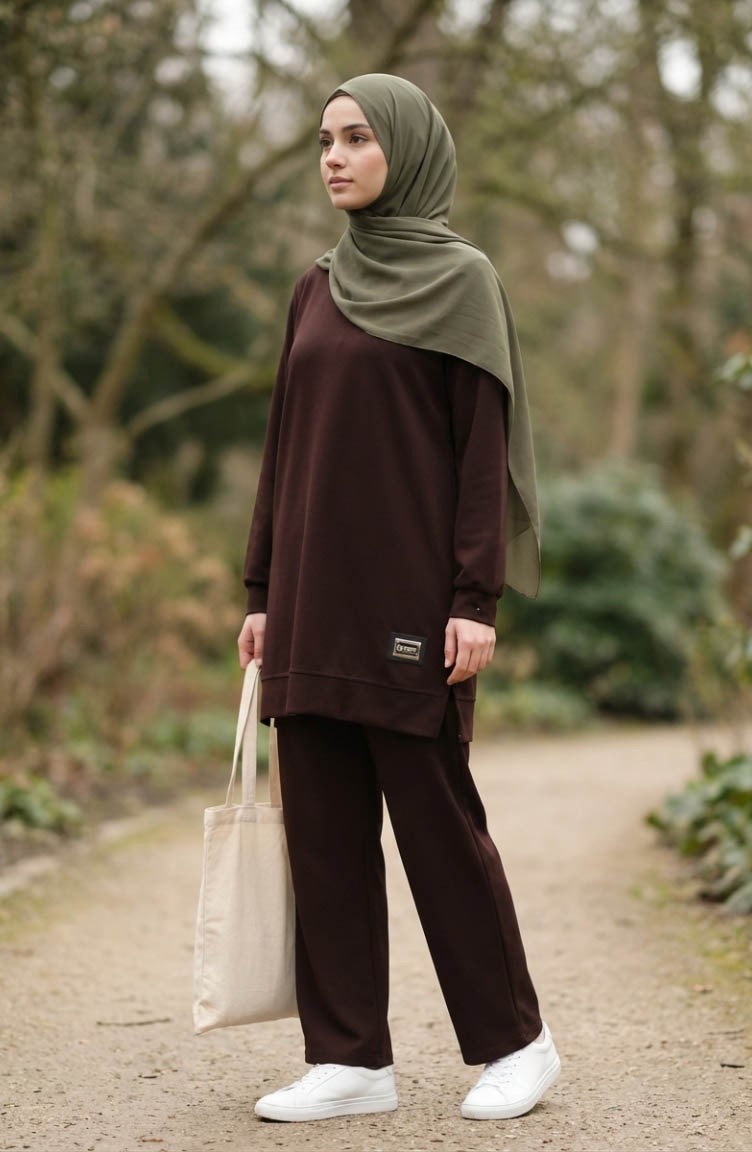 Emblem Detail Tunic And Pants Two-Piece Set 0228-04 Brown 0228-04