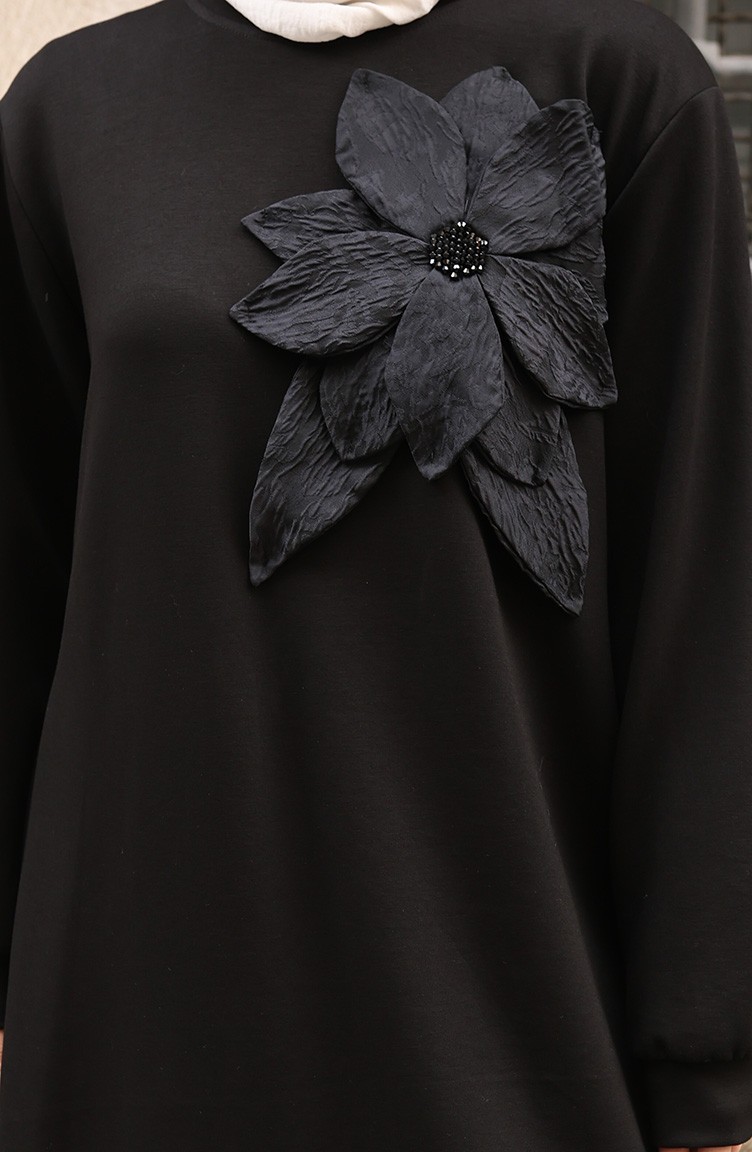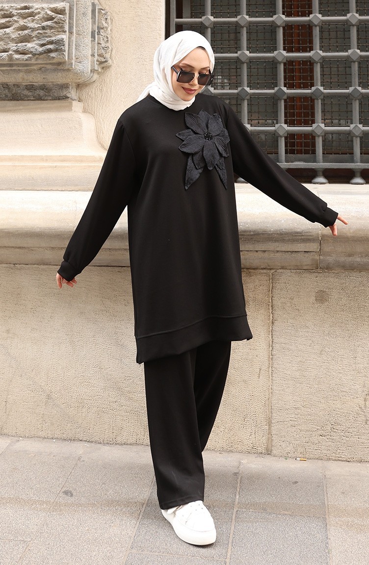 Oysho Fabric Flower Appliqued Hijab Two Piece Suit 0214-03 Black 0214-03