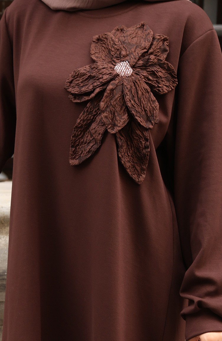 Oysho Fabric Flower Appliqued Hijab Two Piece Suit 0214-04 Brown 0214-04
