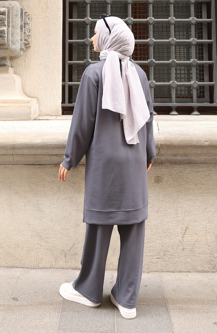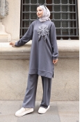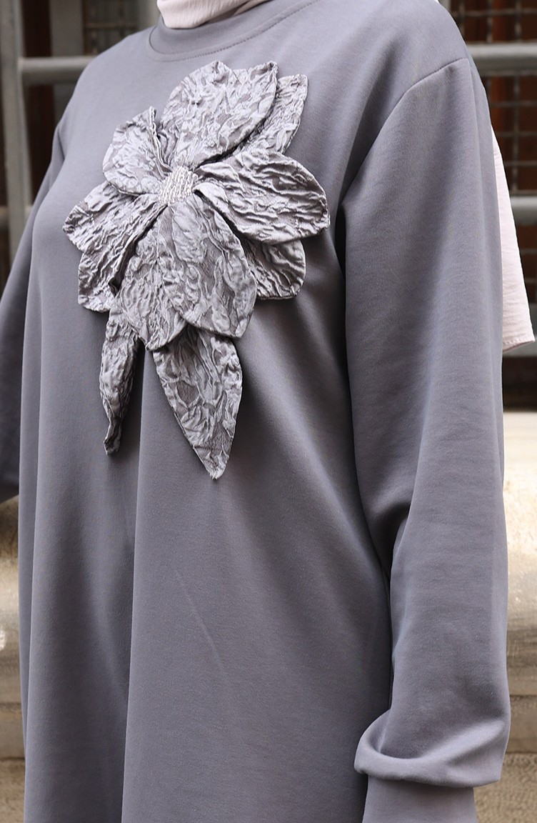 Oysho Fabric Flower Appliqued Hijab Two Piece Suit 0214-05 Anthracite 0214-05