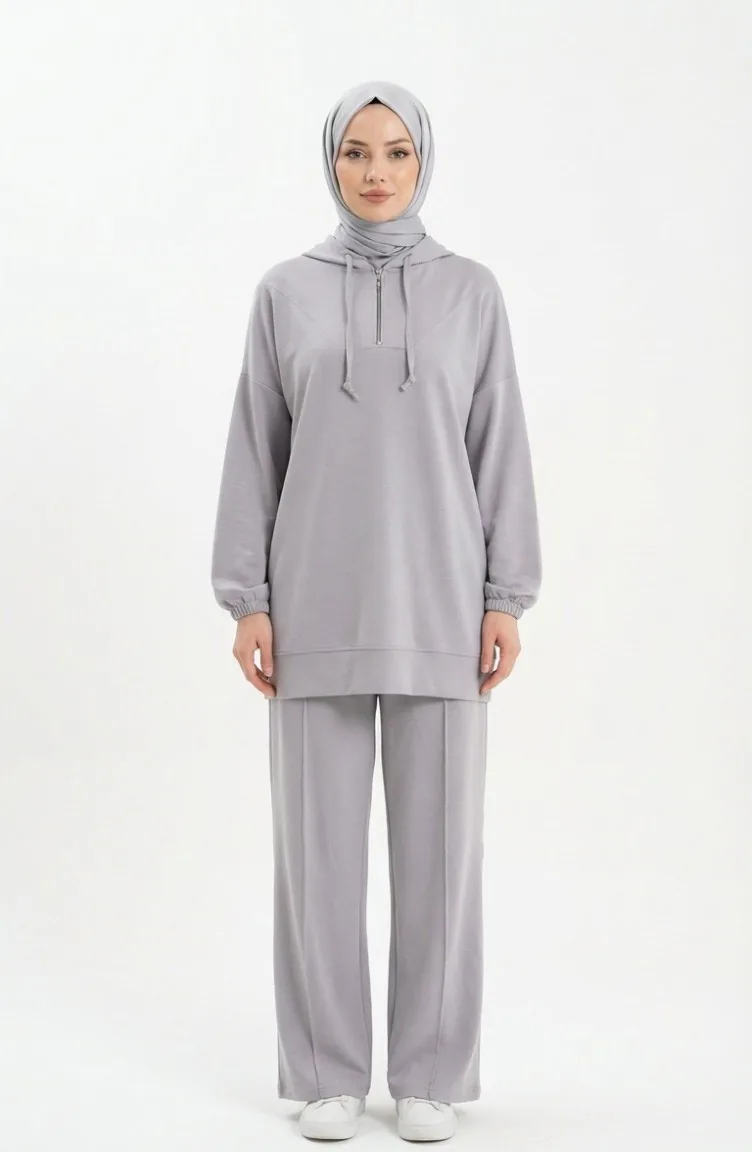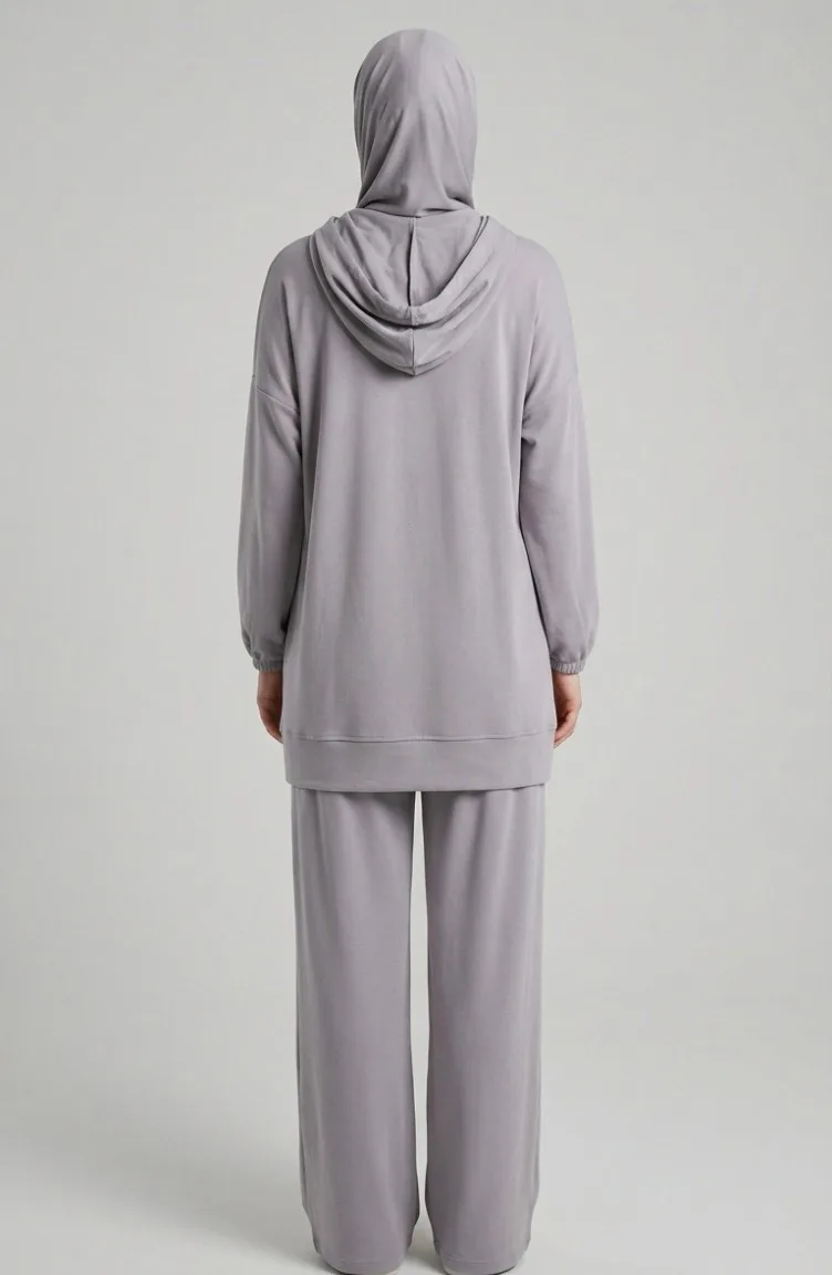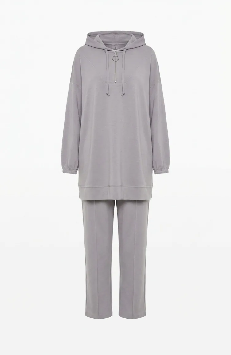 Oysho Fabric Hooded Tunic And Pants Two-Piece Set 0236-05 Grey 0236-05
