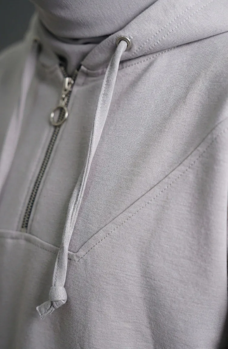 Gray color is used. Oysho. It has a plain appearance. Zipper is used for easy handling. Suitable for 4 seasons. Rahat. Plus size option available.