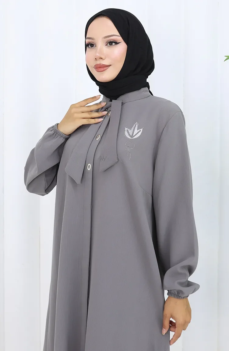Gray color is used. It has a plain appearance. When the tunic combined with another product, you will get a nice suit. It's made of elastic sleeves. Suitable for 4 seasons. Plus size option available.