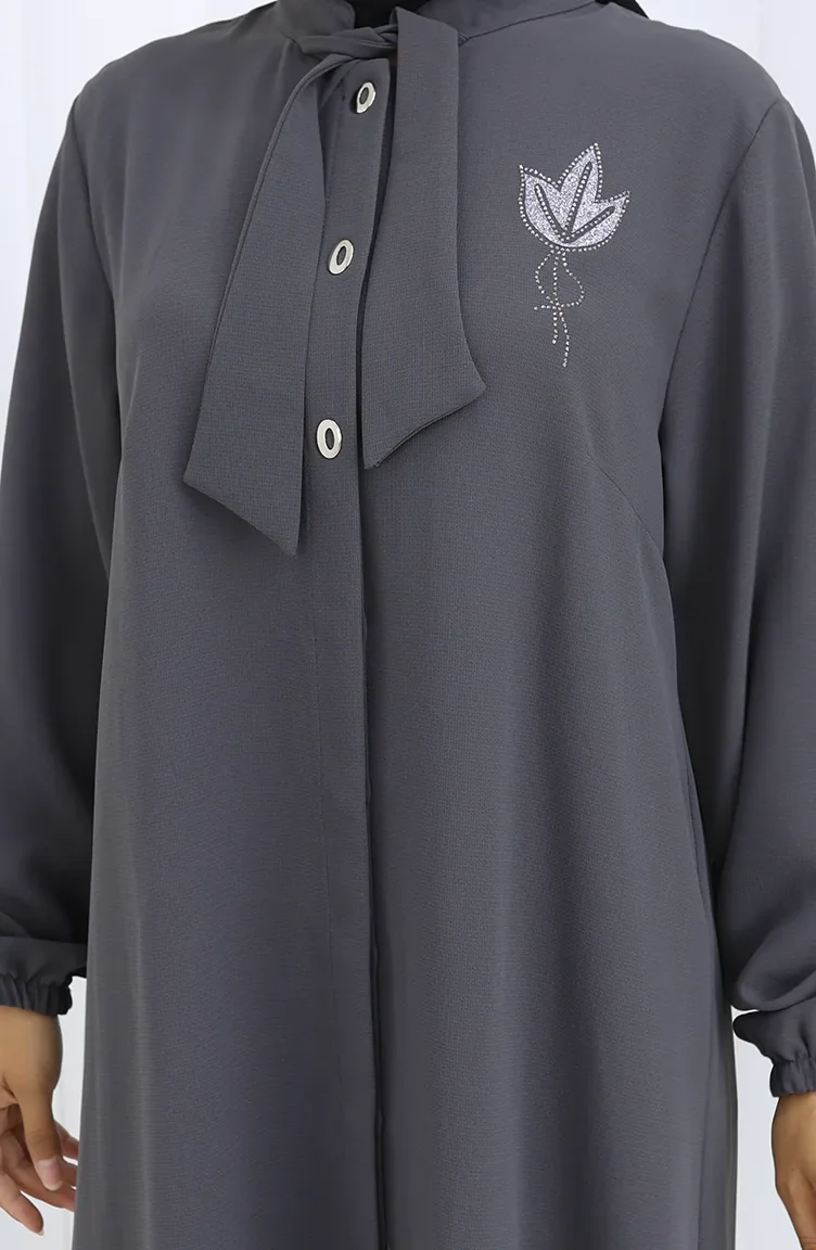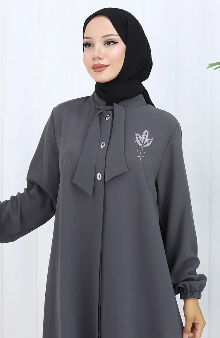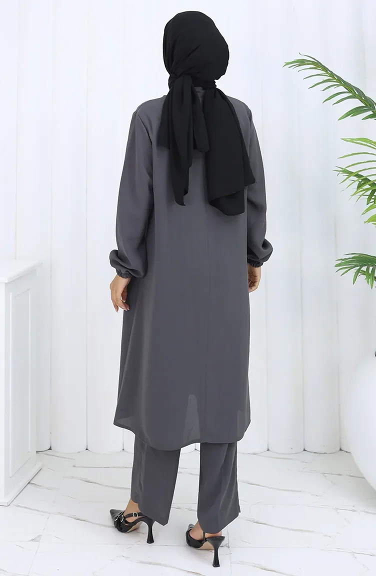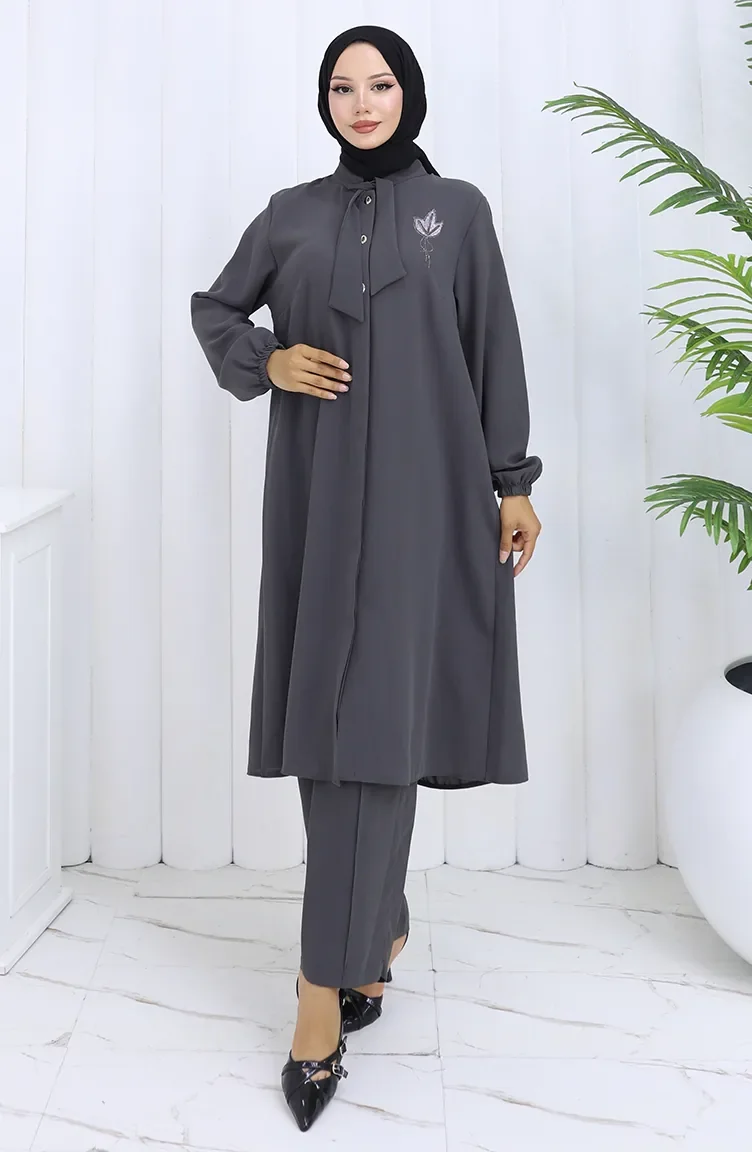 Plus Size Embroidered Tunic Trousers Two Piece Suit 6254-04 Smoke 6254-04