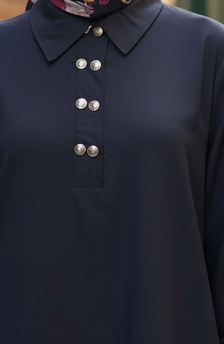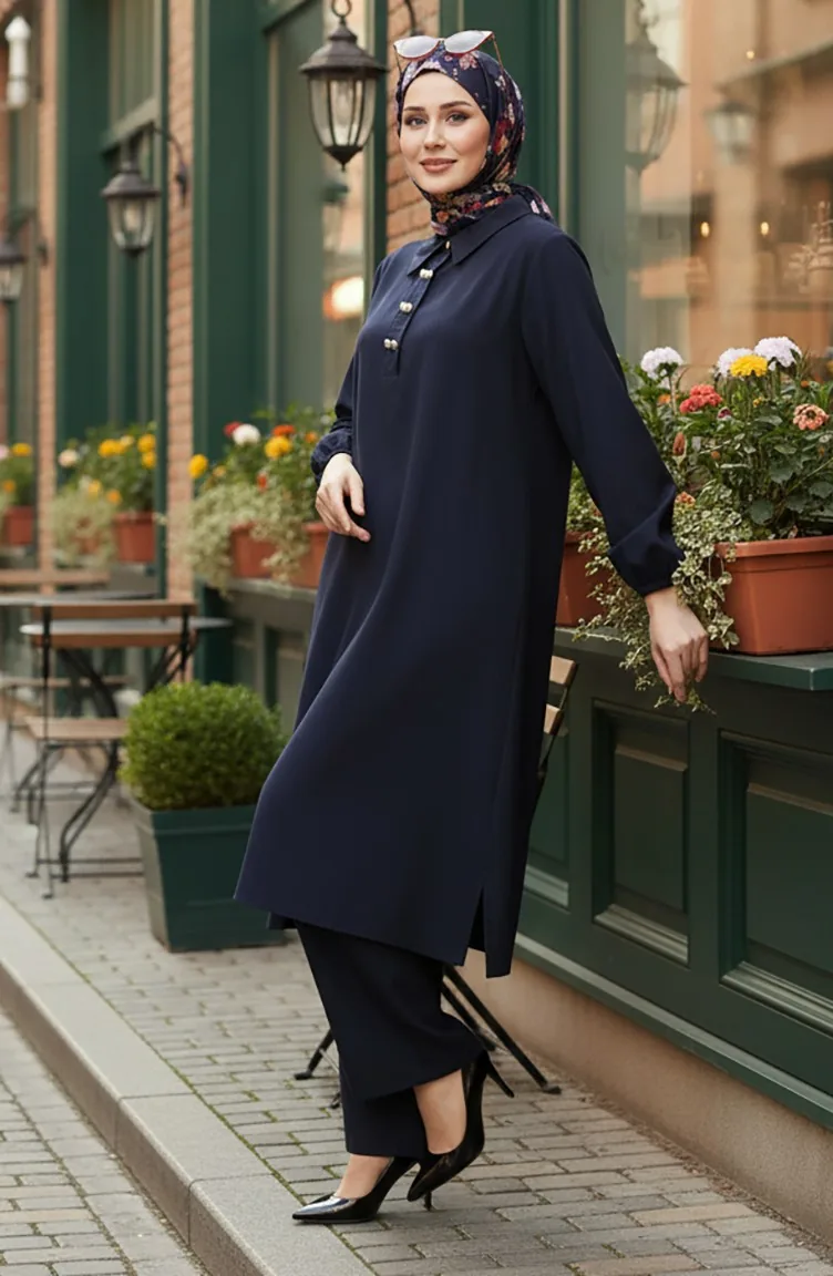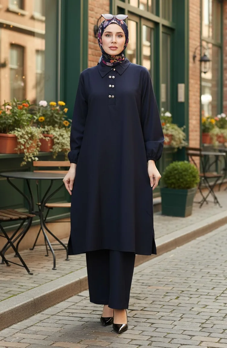 Shirt Collar Tunic Trousers Two Piece Suit 0123-05 Navy Blue 0123-05