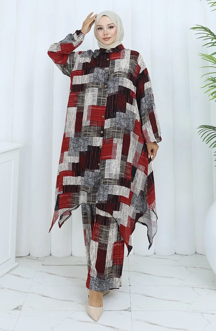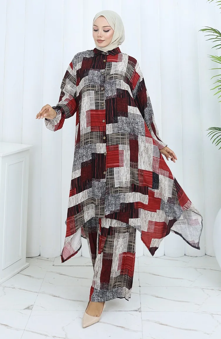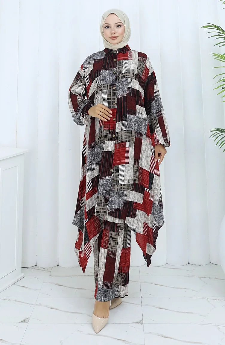 Viscose Fabric Tunic Trousers Double Suit 2139-03 Claret Red Mink 2139-03