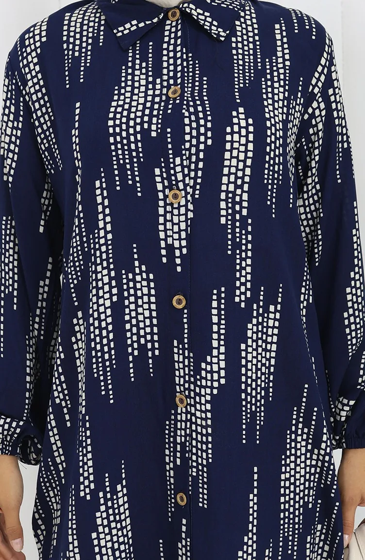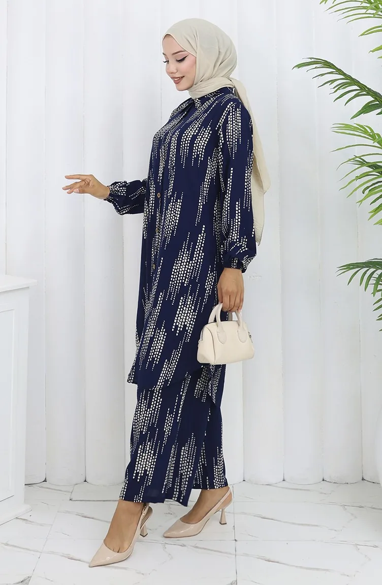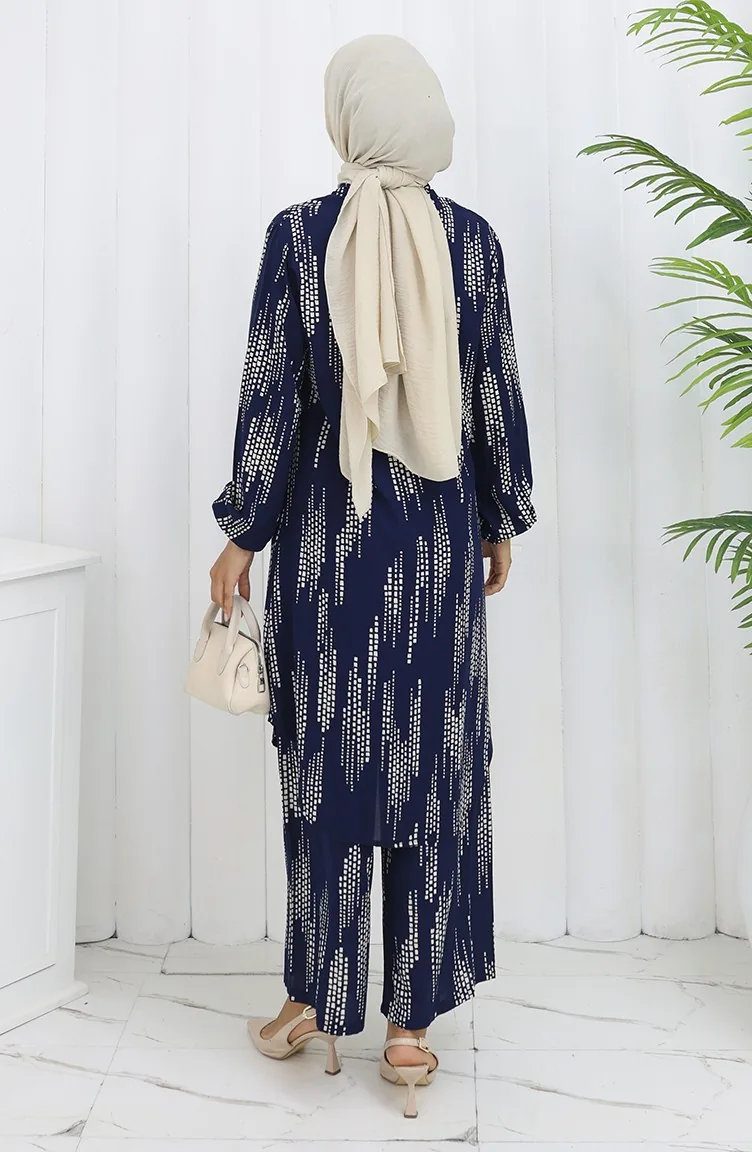 Viscose Fabric Tunic Trousers Two Piece Suit 0132-02 Navy Blue 0132-02