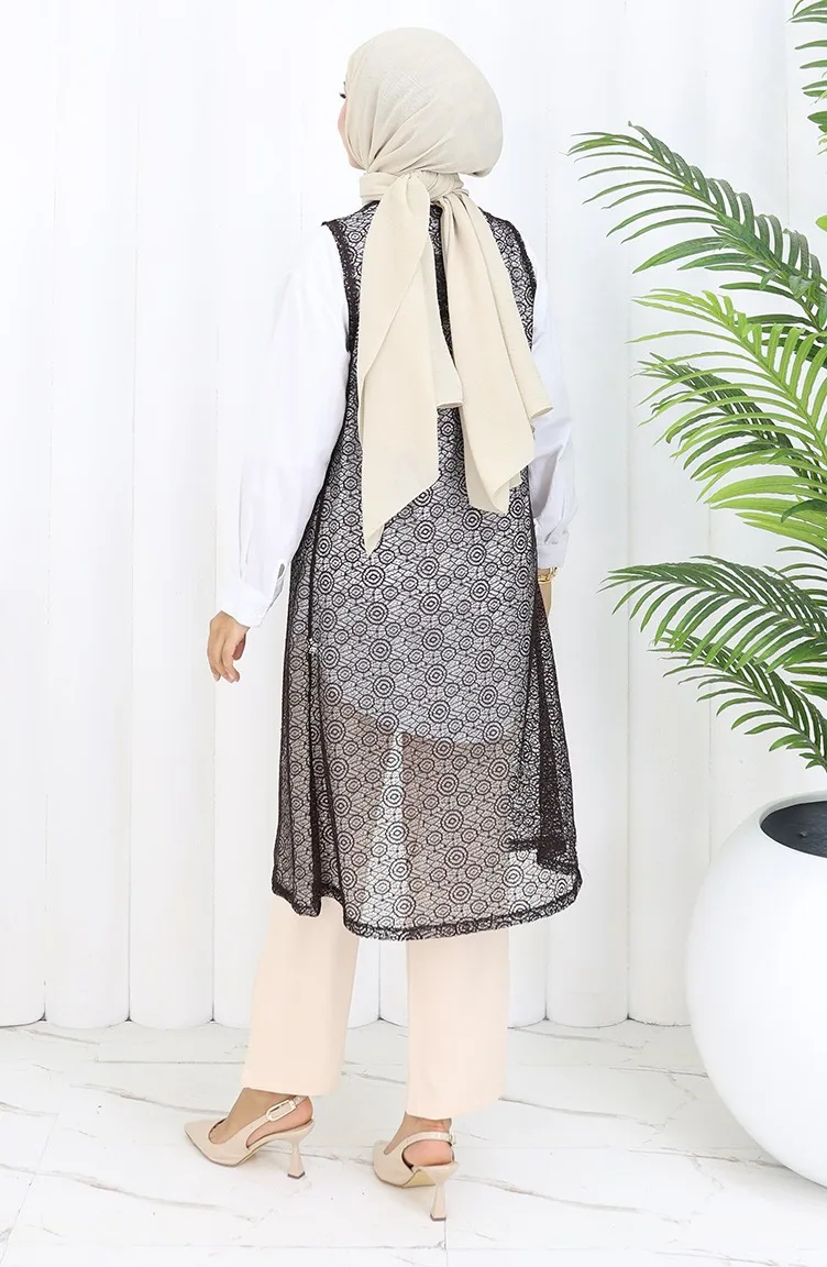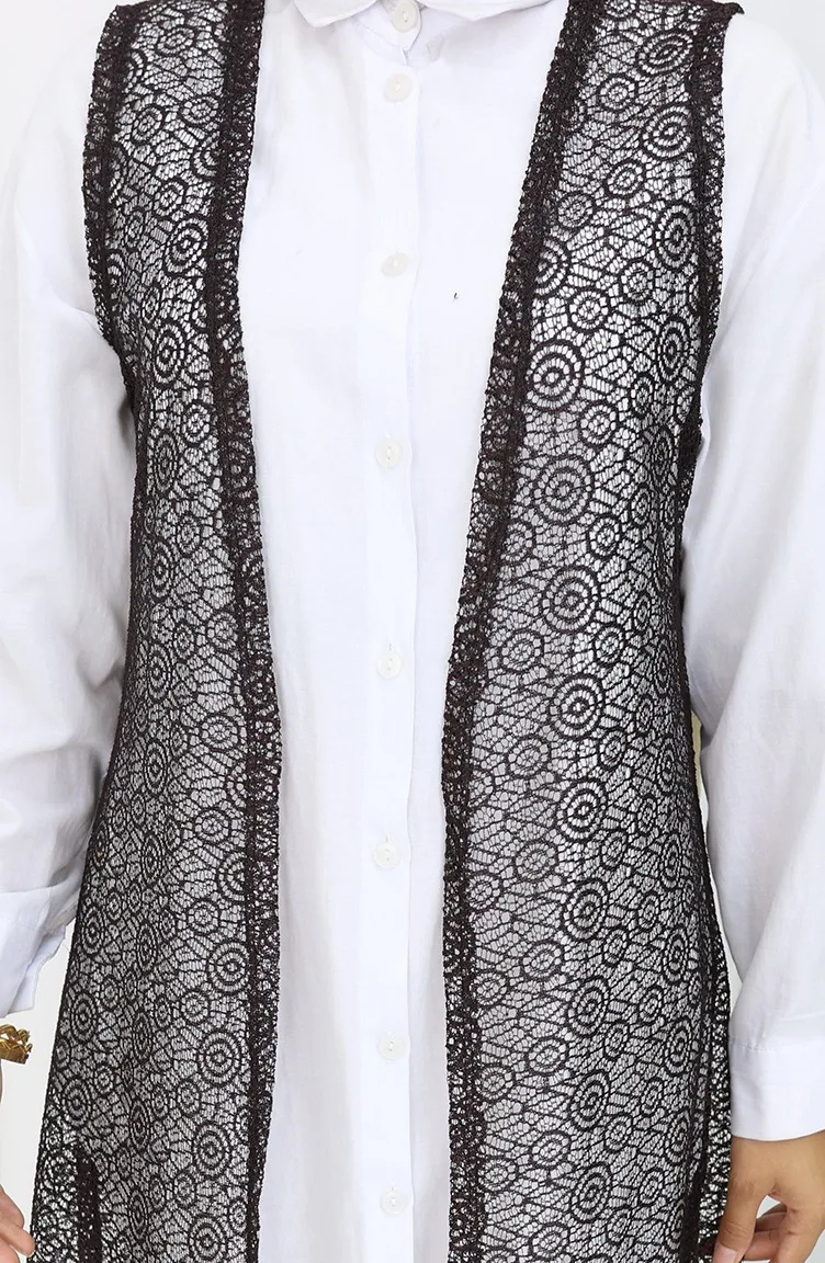 Dantelli Dar Kesim Yelek 8760-02 Kahverengi 8760-02
