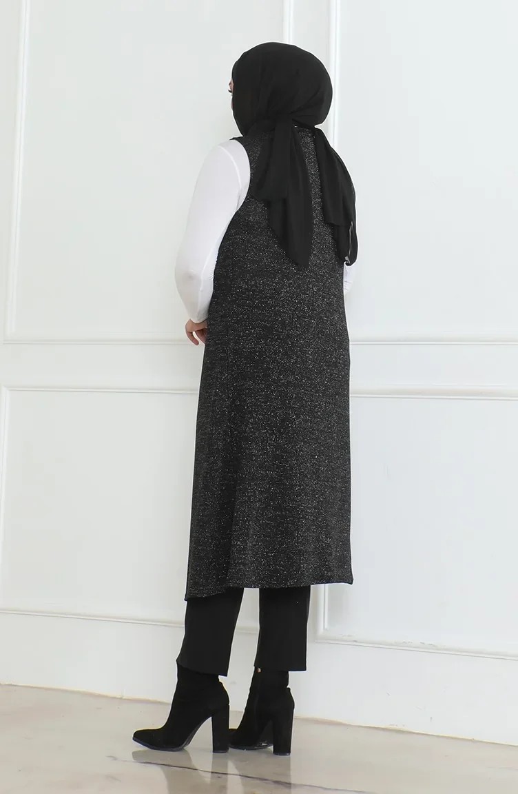 Glittery Flowy Seasonal Long Vest 8737A-01 Black 8737A-01