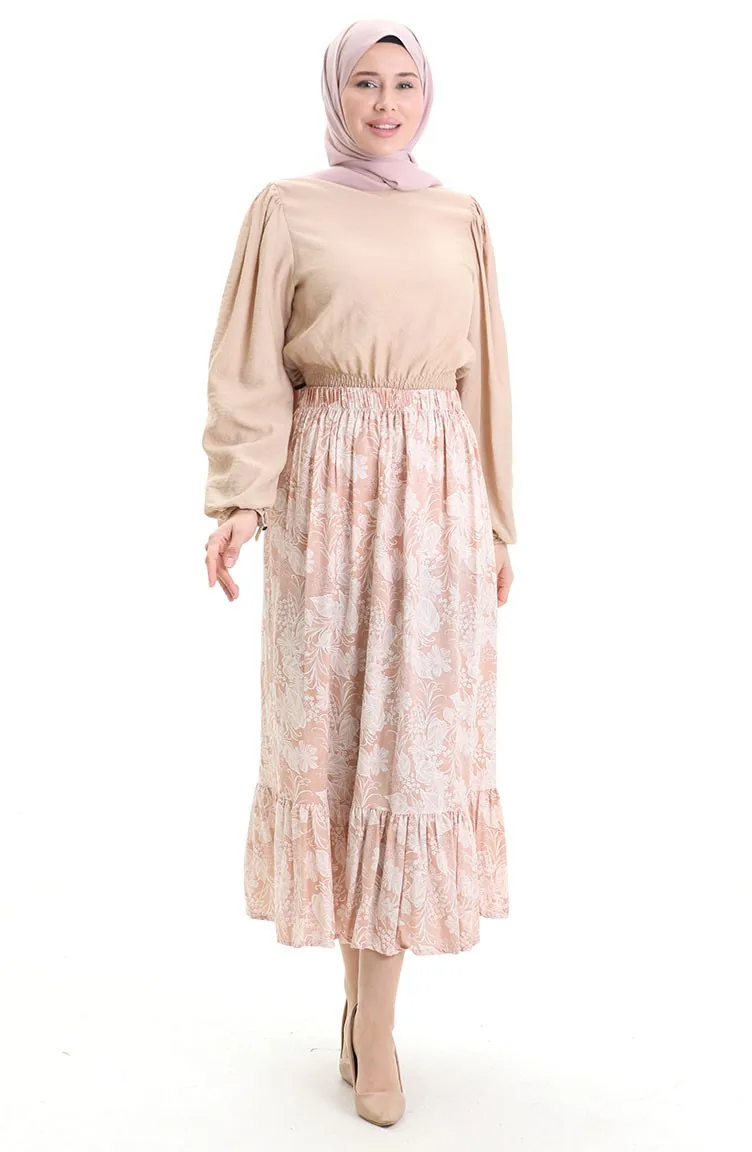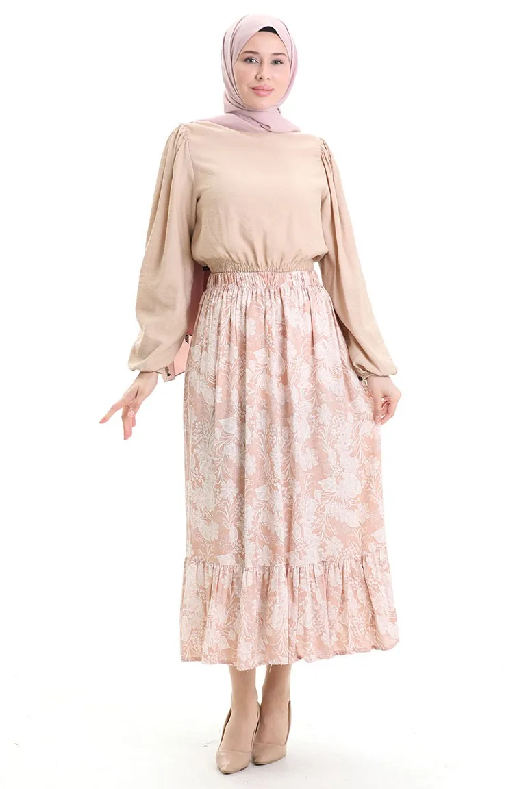 Elastic Waist Patterned Skirt 2058-03 Powder 2058-03