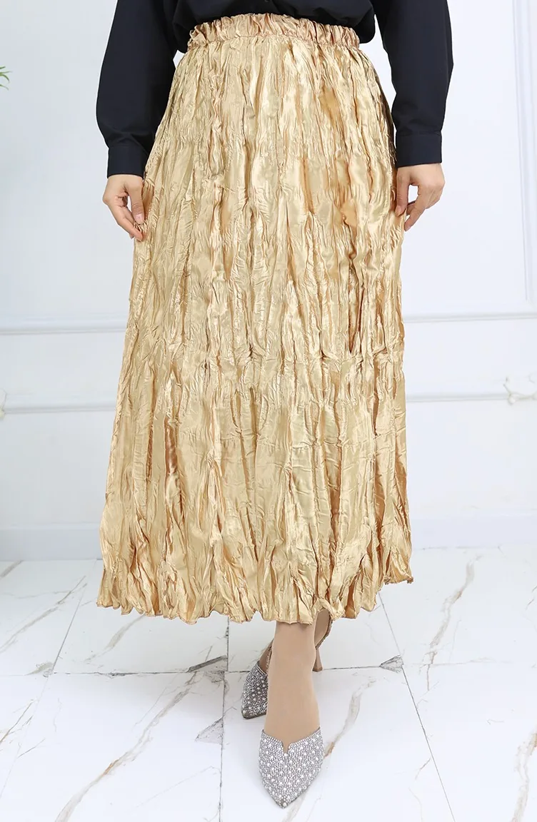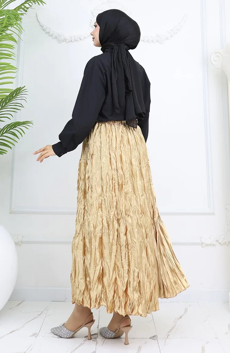 Elastic Waist Satin Skirt 0048-07 Yellow 0048-07