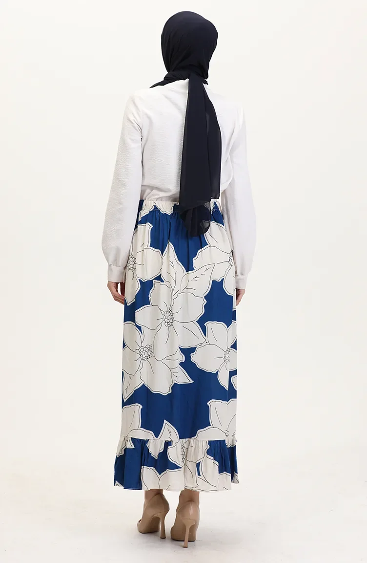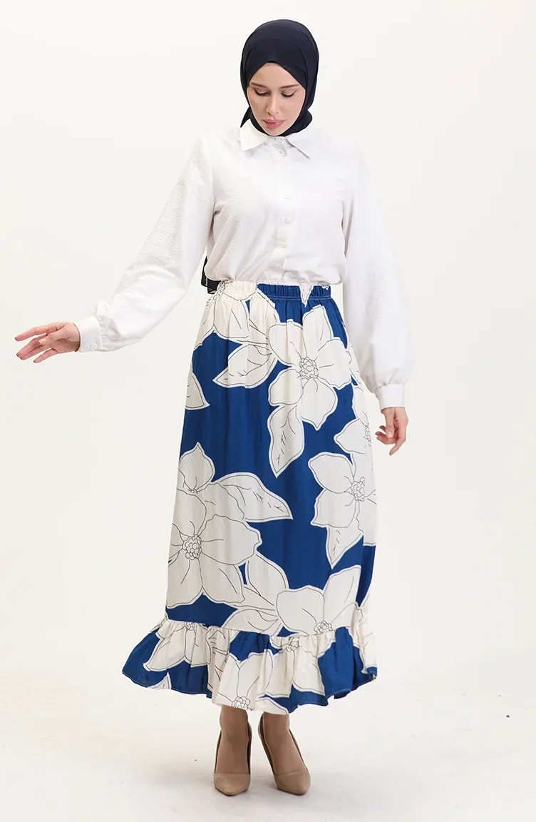 Viscose Fabric Elastic Waist Ruffle Skirt 2012E-01 Navy Blue 2012E-01