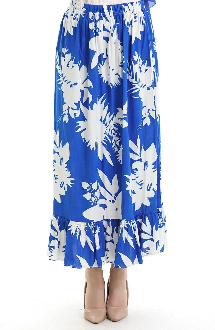 Saxon blue color is used. Viscose is a type of synthetic fabric and is convenient to use. Designed with patterned fabric. It has ruffle detail. Suitable for 4 seasons. Length is adjusted according to standard size measurements.