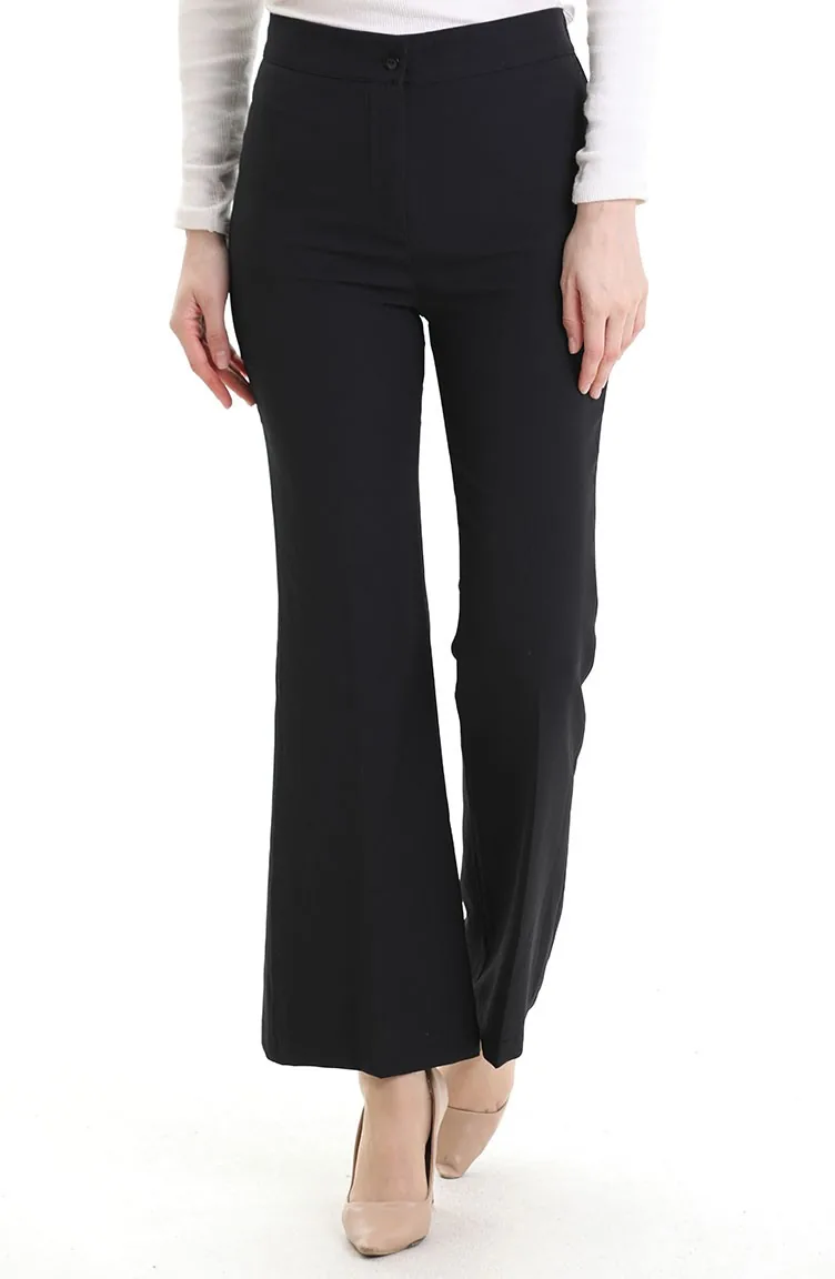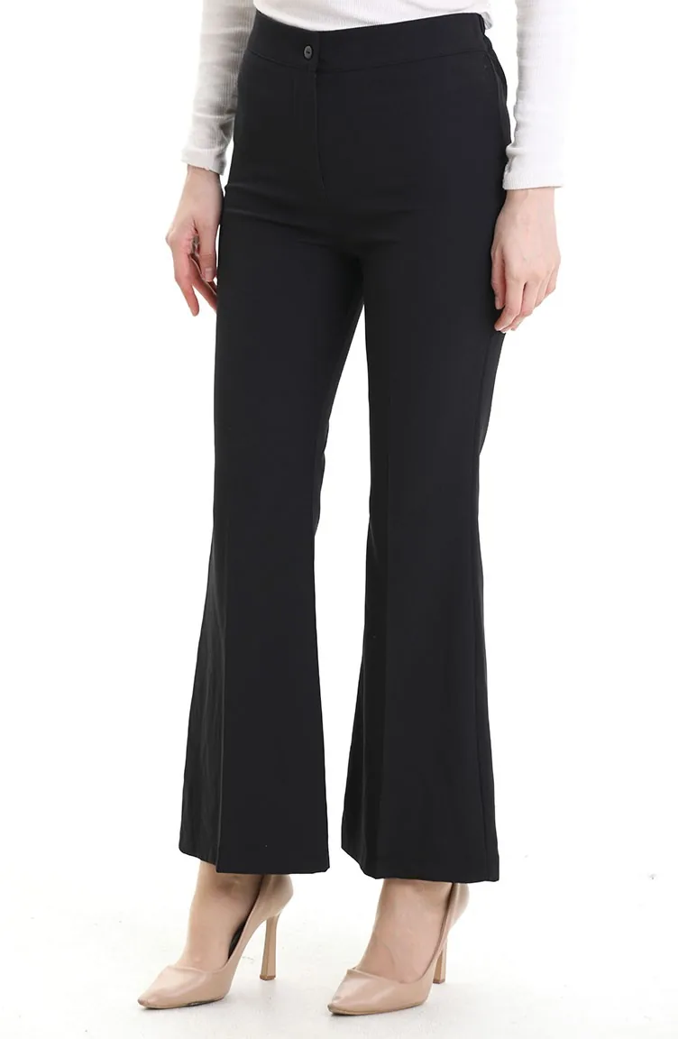 Elastic Waist Bell-bottomed Trousers 4005-01 Black 4005-01