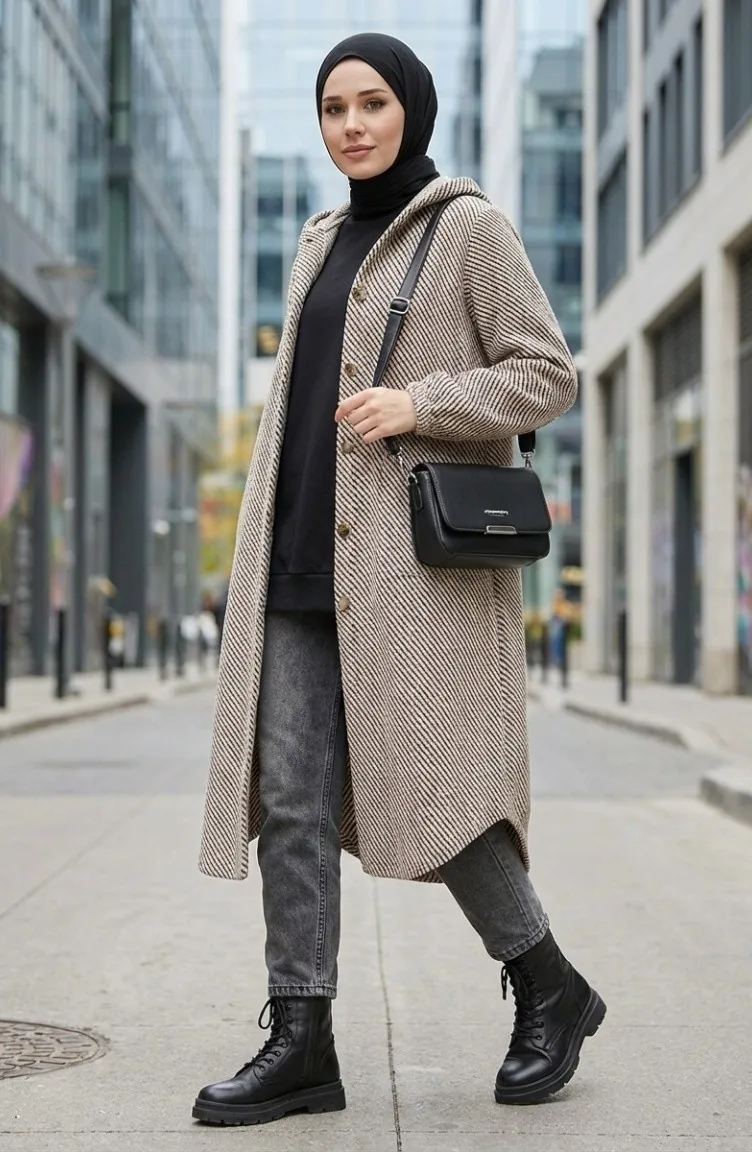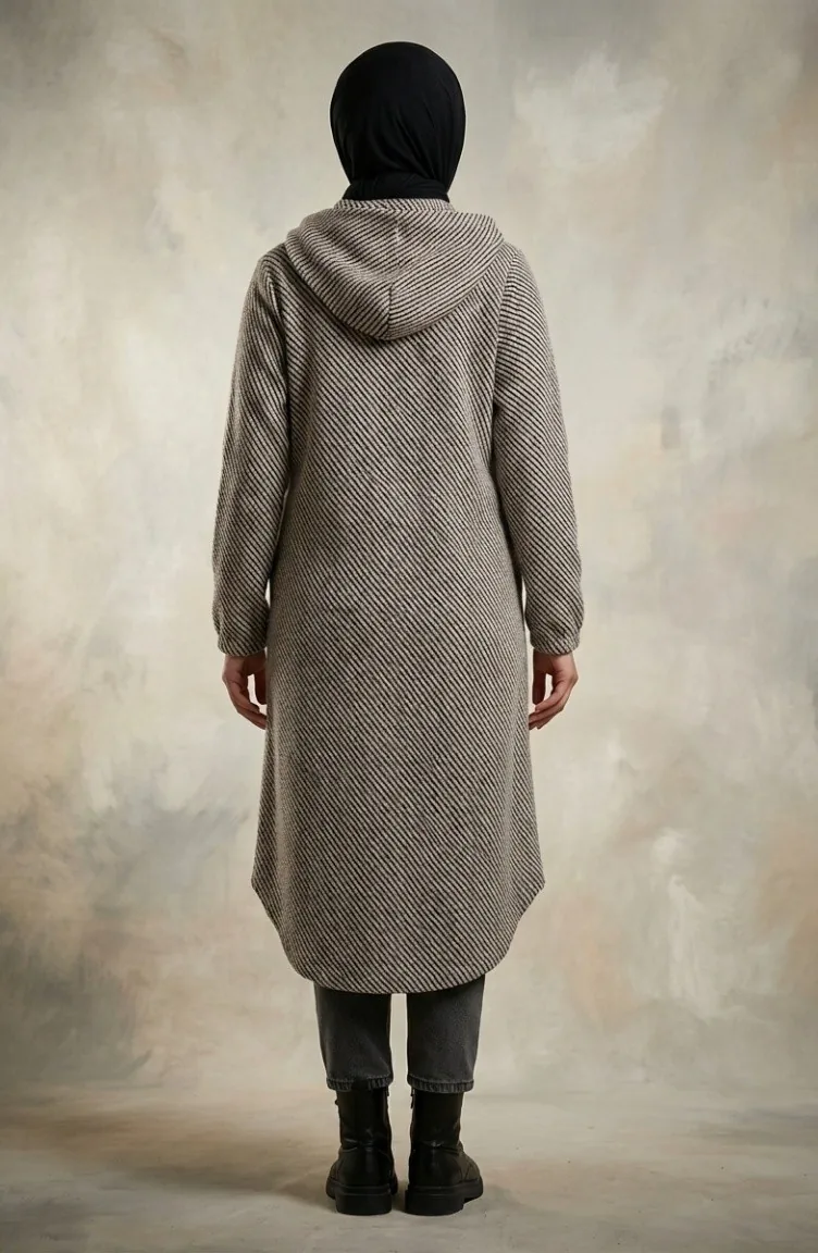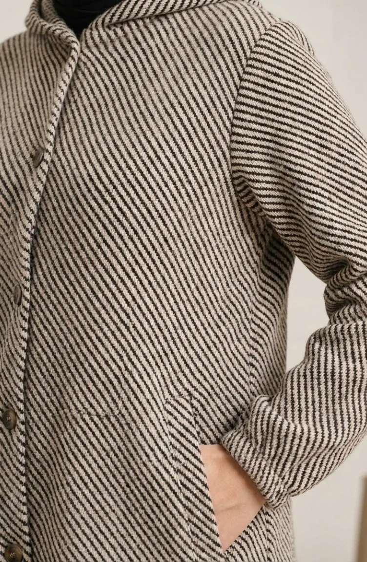 Hooded Buttoned Cashmere Coat 0201-12 Light Mink 0201-12