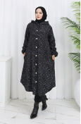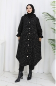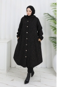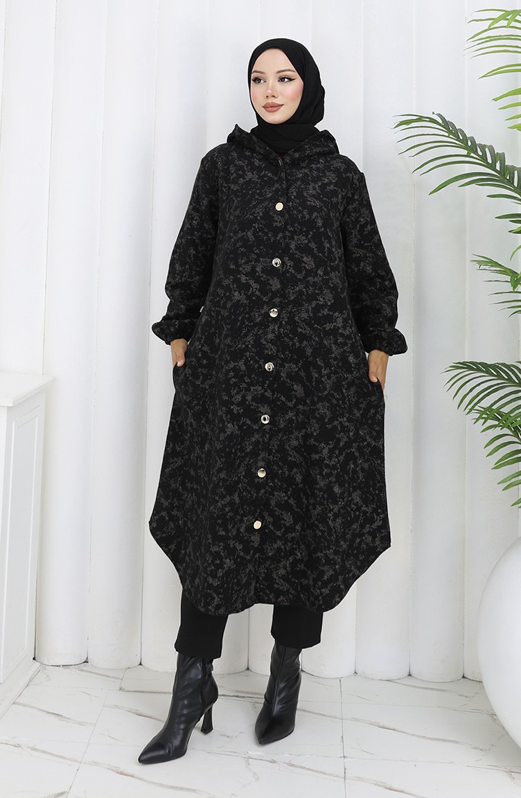 Patterned Hooded Cashmere Coat 0187A-01 Black Beige 0187A-01