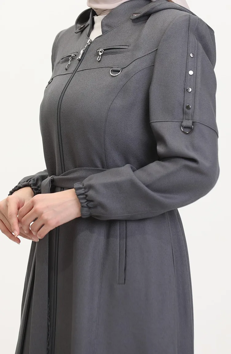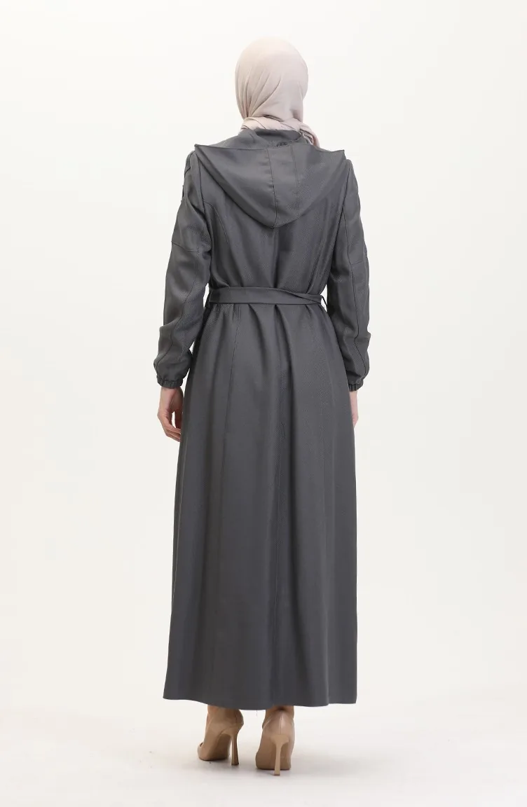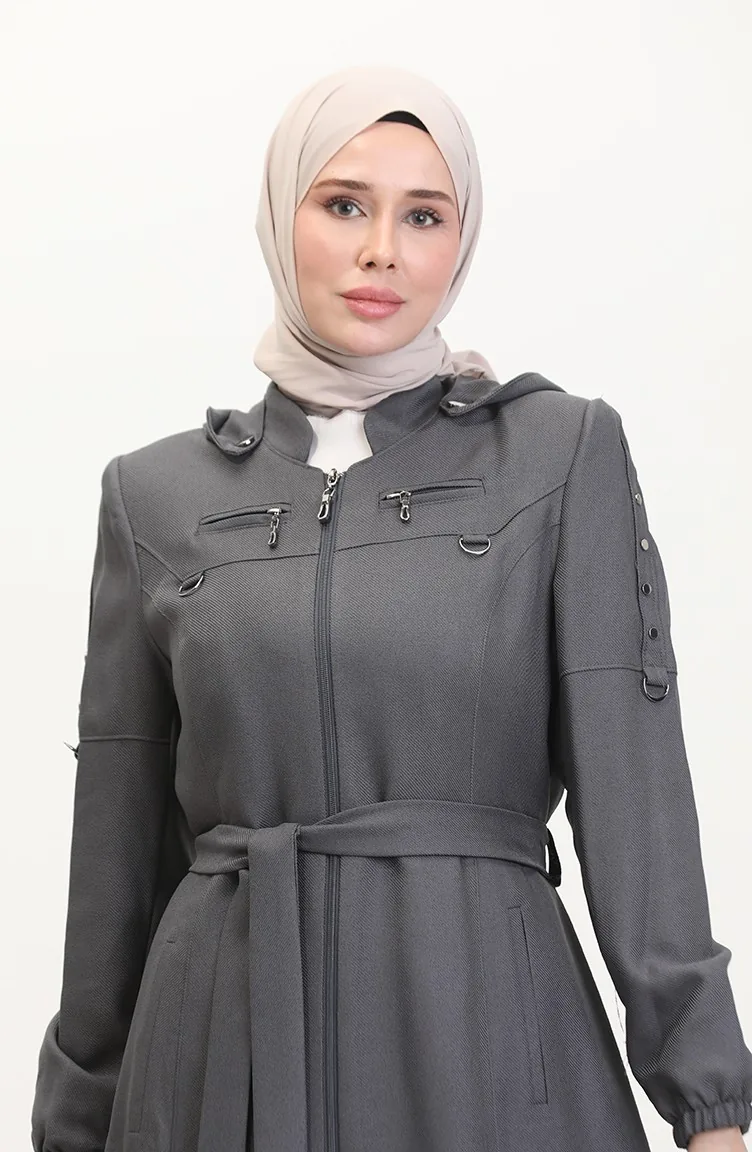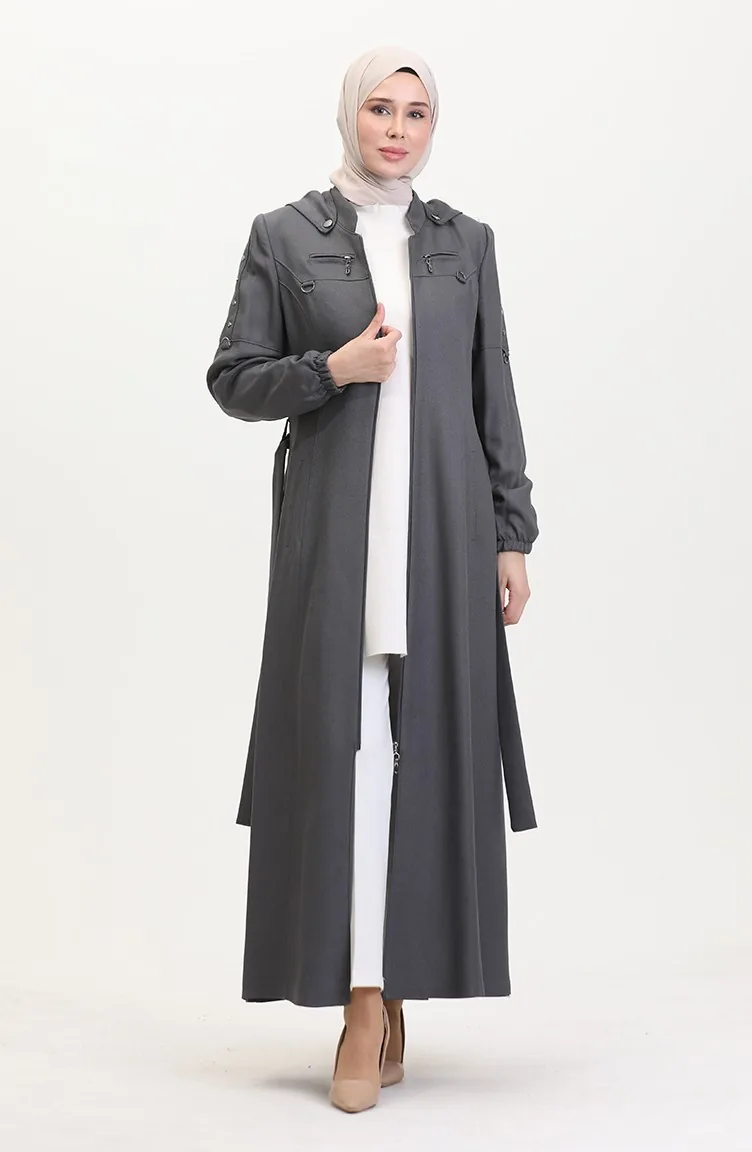 Large Size Hooded Zippered Coat 0478-07 Gray 0478-07