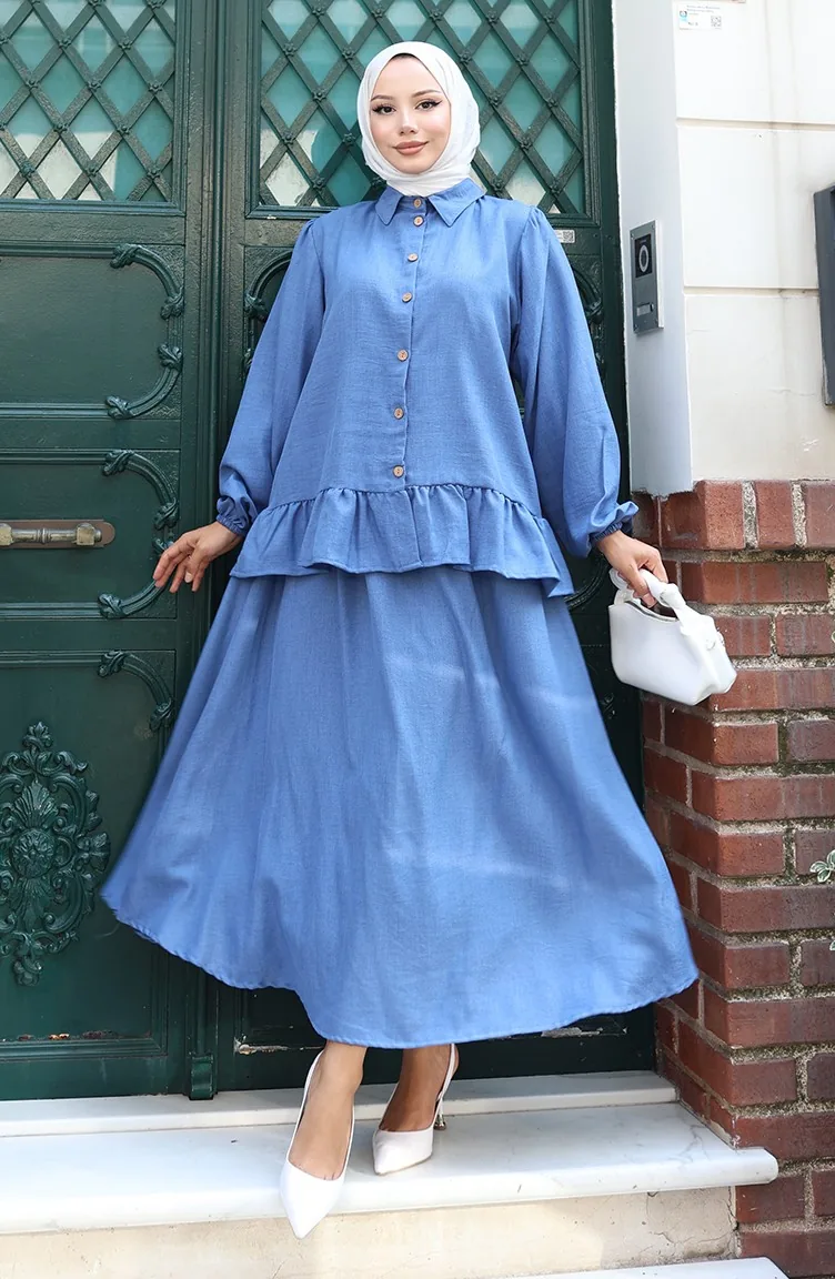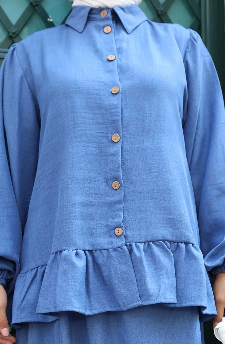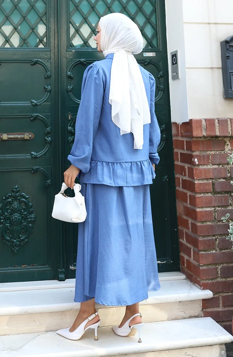Fırfırlı Tunik Etek İkili Takım 0146-04 İndigo