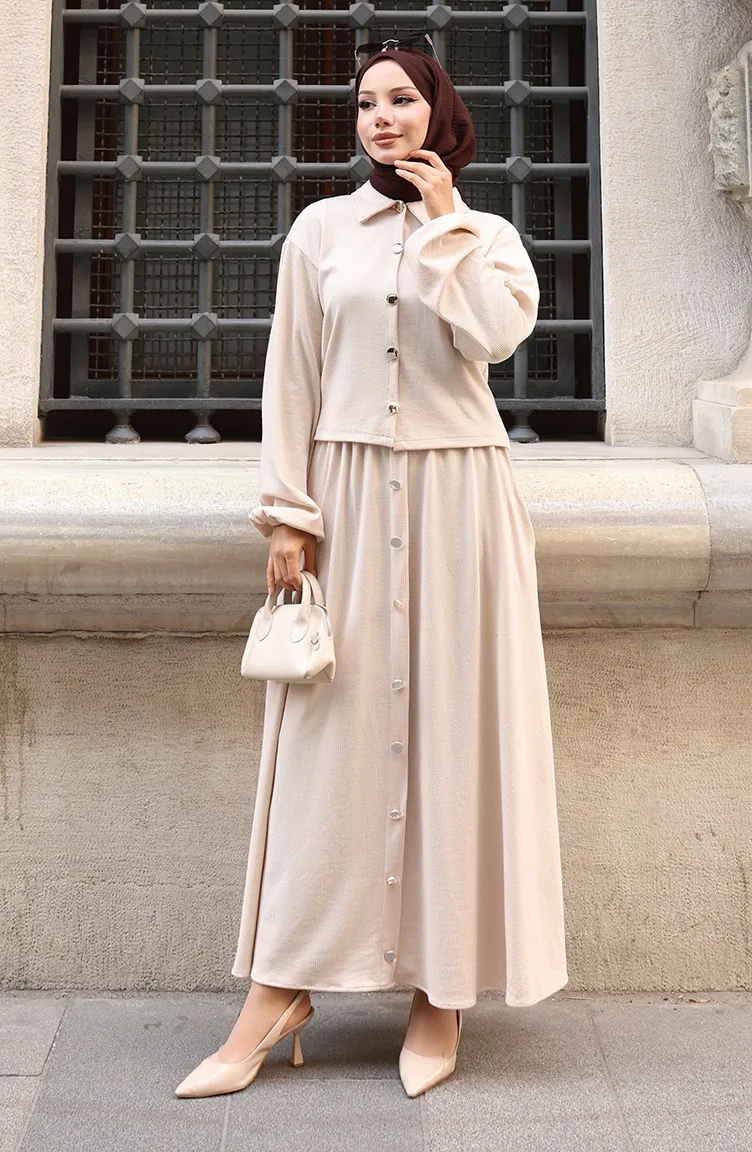 Gömlek Yaka Tesettür Tunik Etek ikili Takım 0223-01 Bej