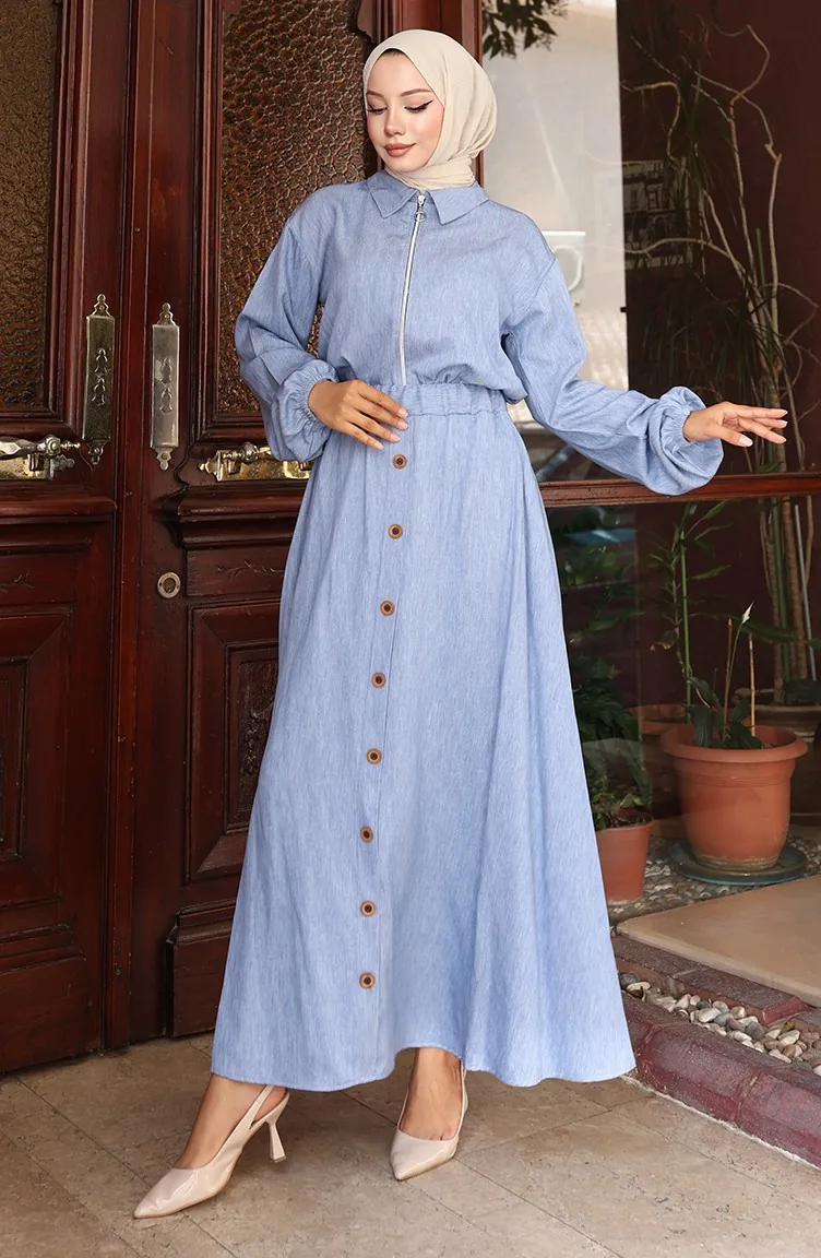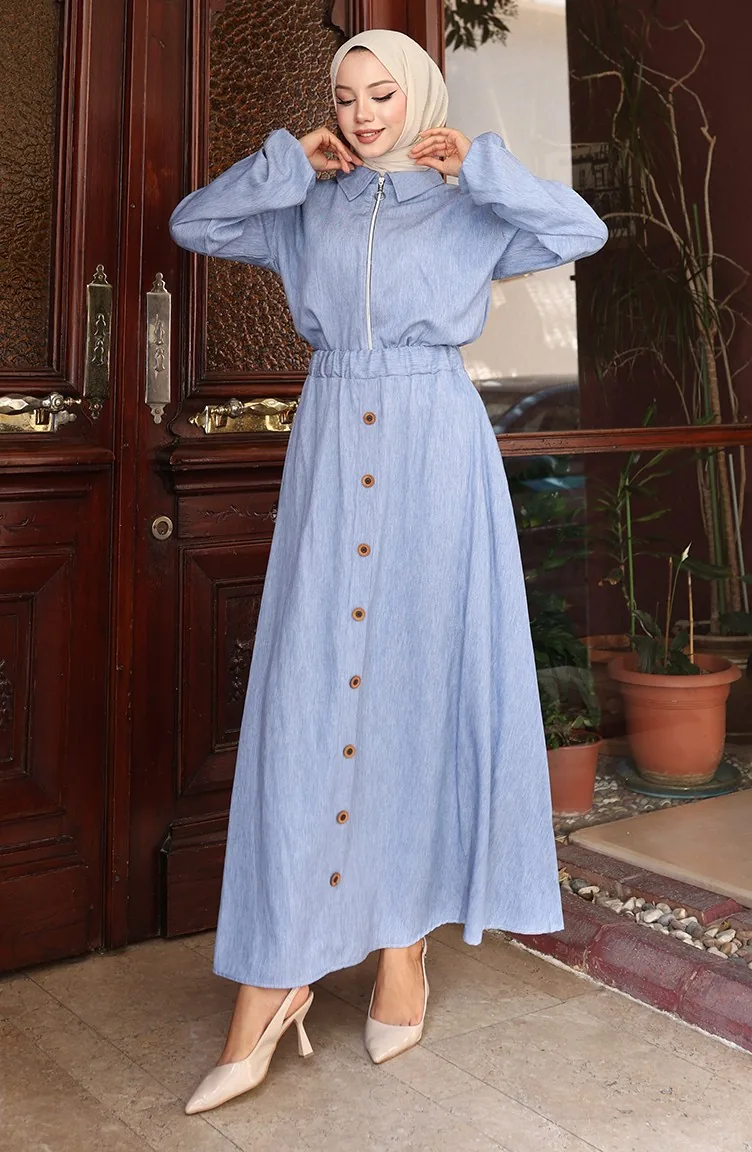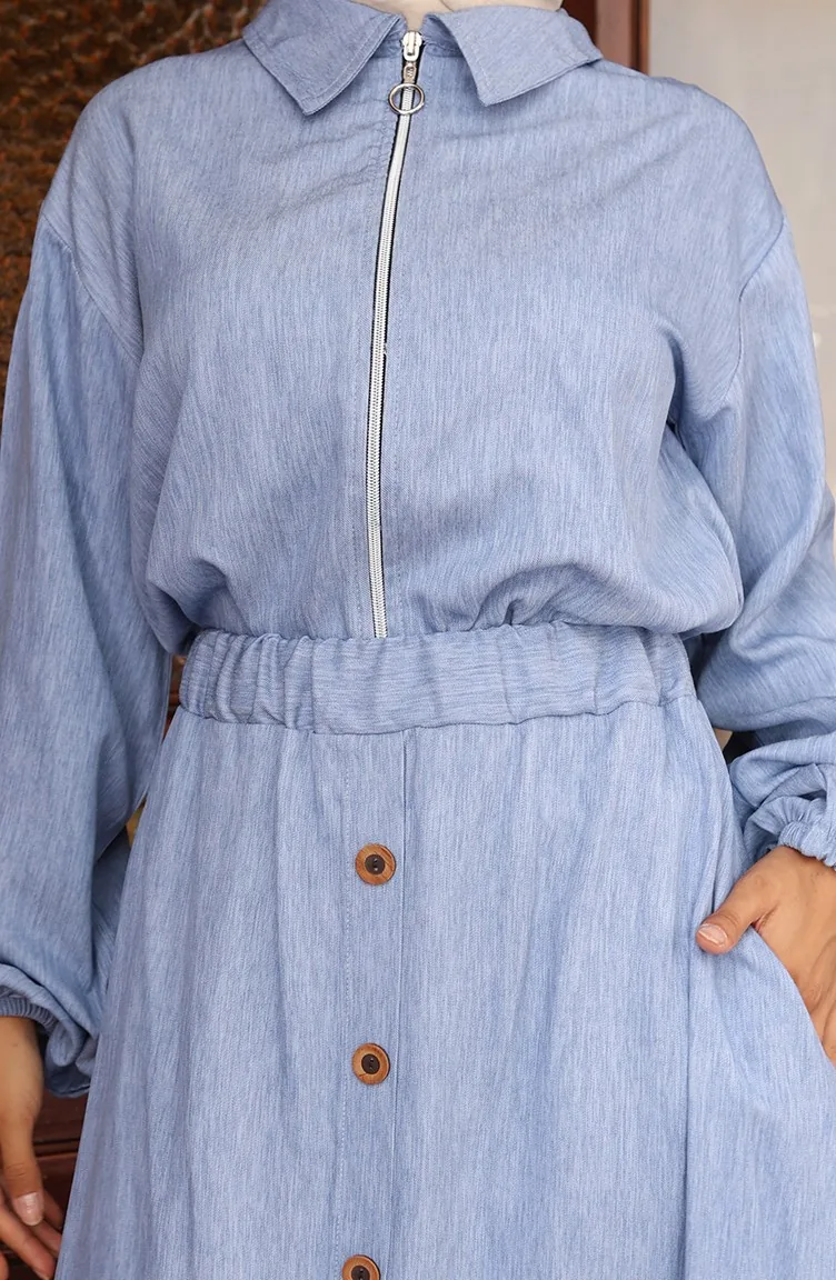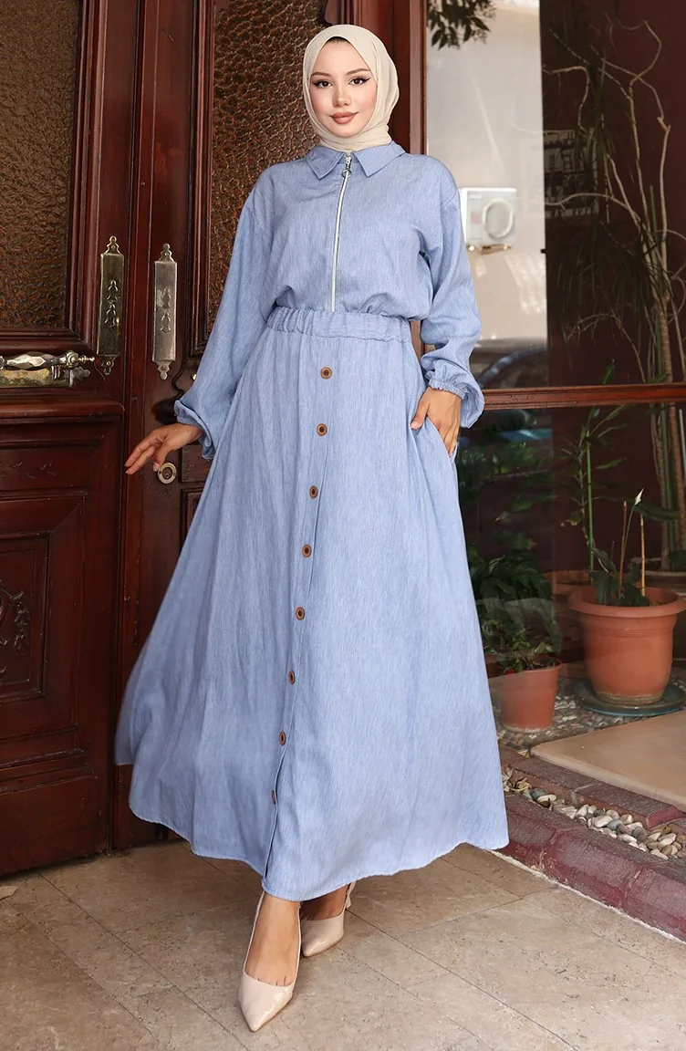 Kolu Lastikli Fermuarlı Kot Etekli İkili Takım 0135-01 Kot Mavi