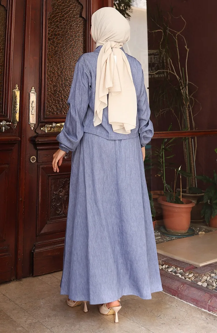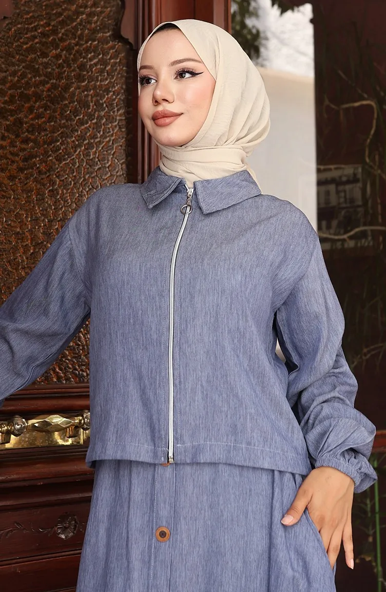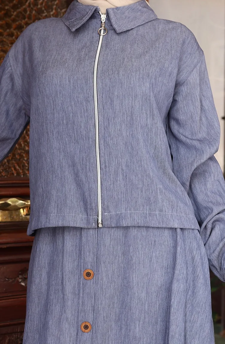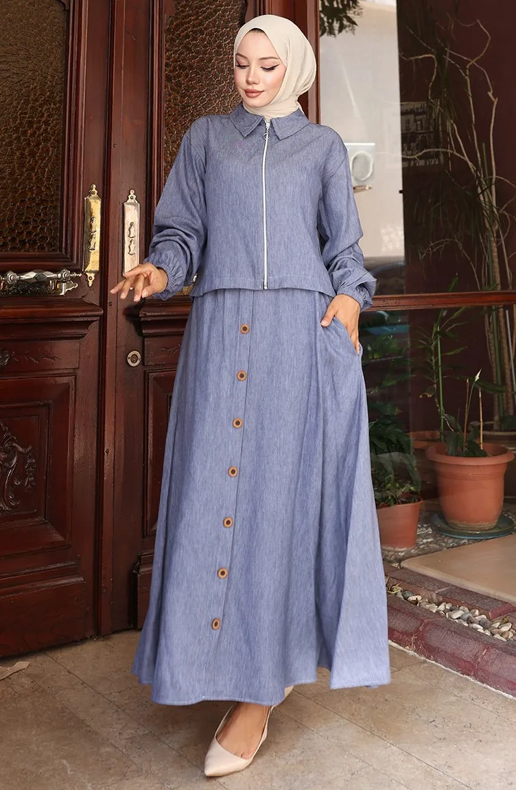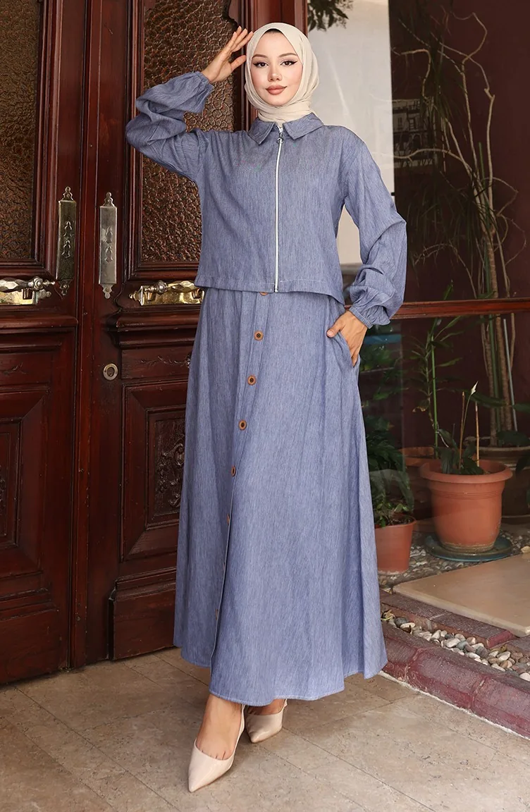 Kolu Lastikli Fermuarlı Kot Etekli İkili Takım 0135-02 Lacivert