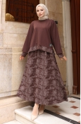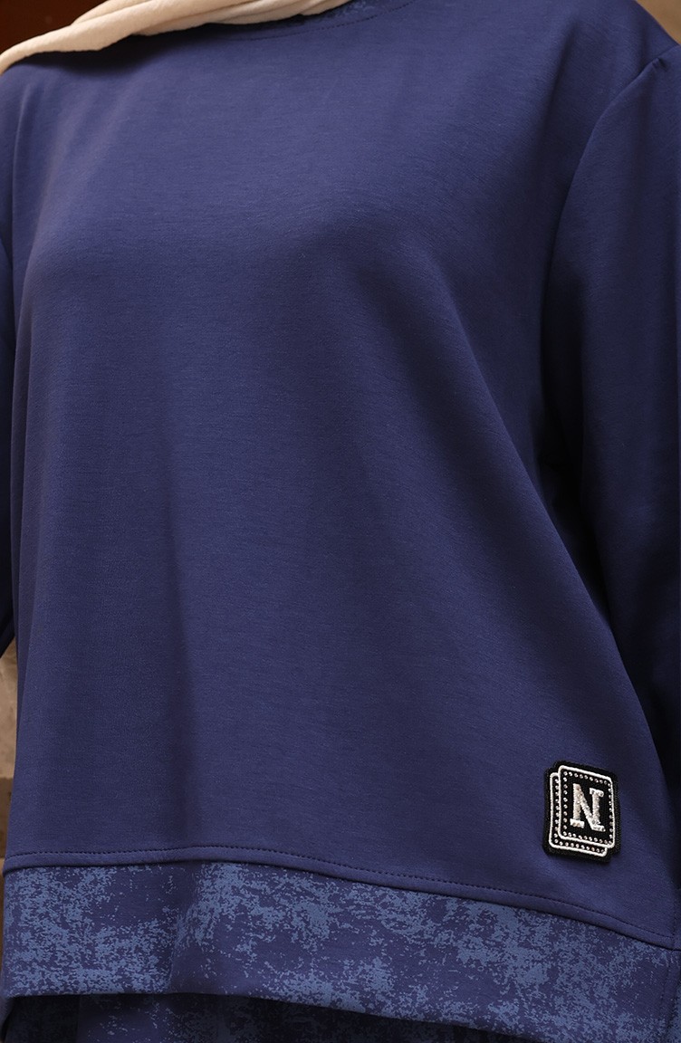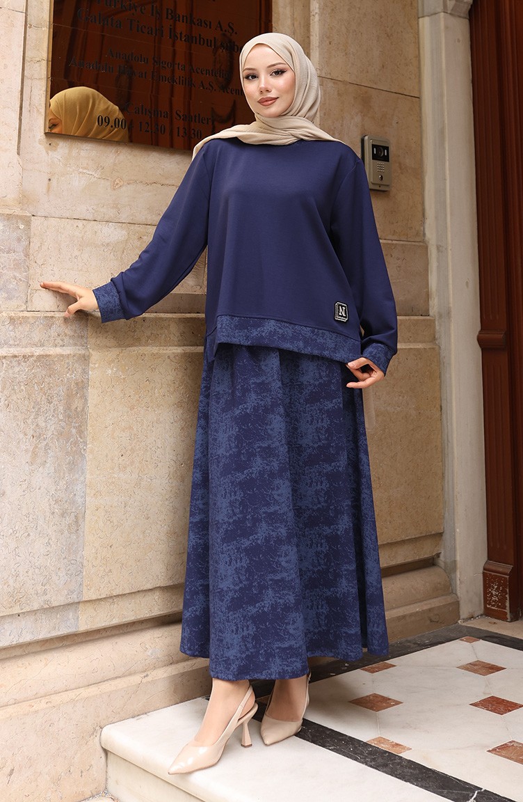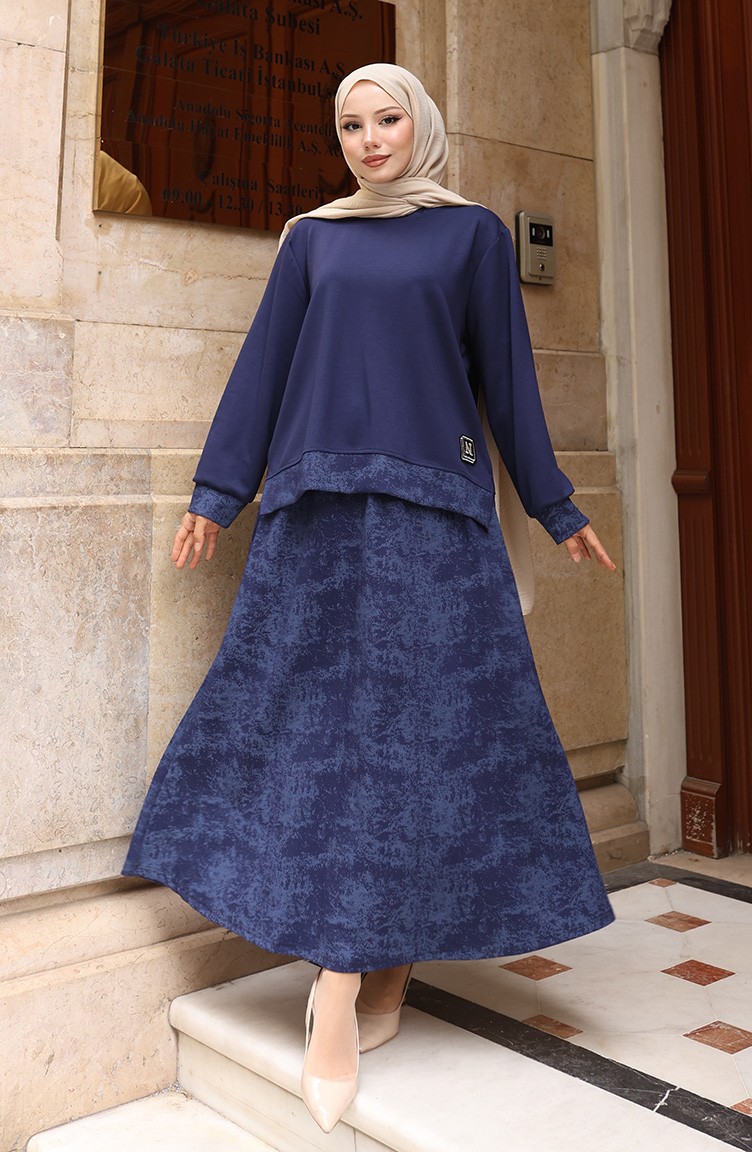 Oysho Kumaş Desenli Etekli Tesettür Takım 0218-01 Lacivert